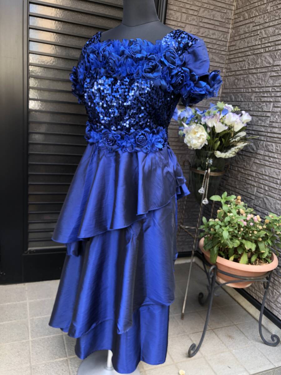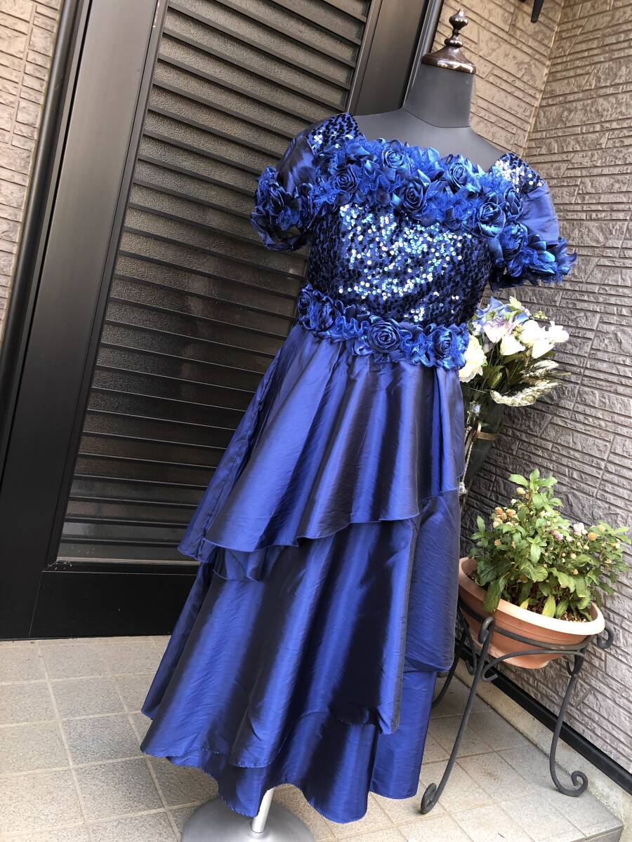 双和ロジスティクス ドレス ワンピース カクテルドレス キャバ嬢ドレス 大きいサイズLL~3L 美品 薔薇モチーフ スパンコール付