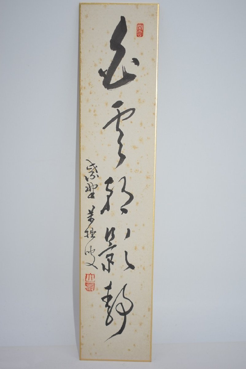 短冊 大徳寺 興臨院 山口 大痴(萬拙) 「白雲朝影静」 03-8610 茶道 約(36.3×6.2)cm 折れ、汚れ、当り、シミはありますが、本体はしっかりしています、お稽古にお使いになるには差し支えありません。
