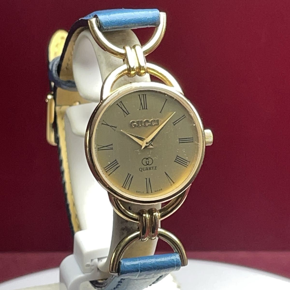 ●クラシカルな雰囲気のGUCCI、1990年代製 スイス製 のヴィンテージ クォーツ腕時計です。