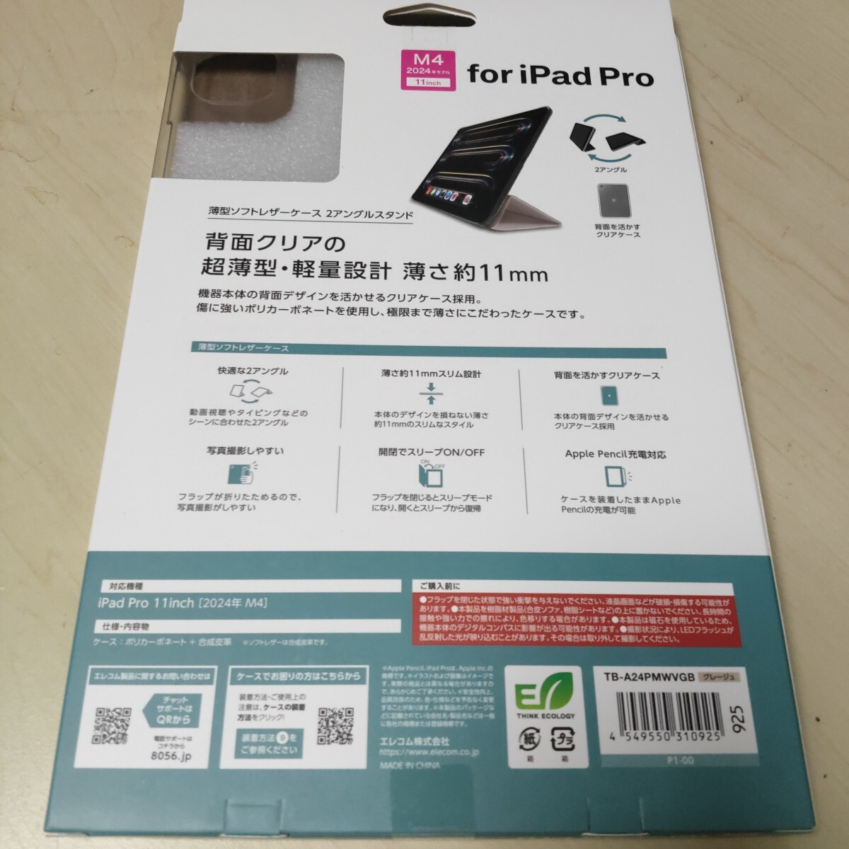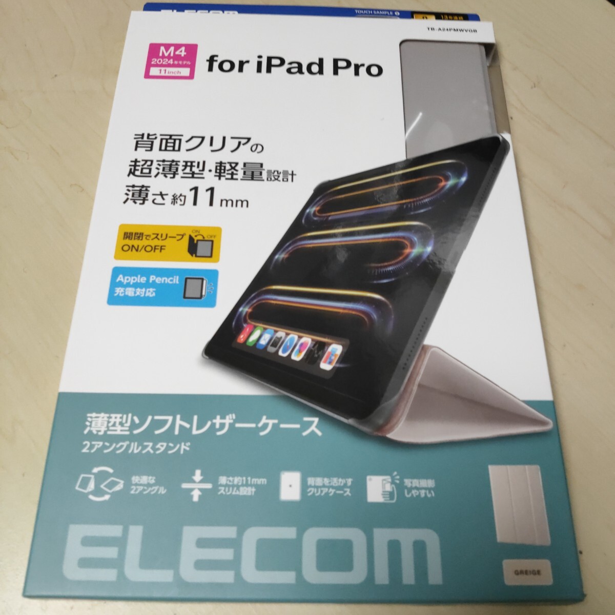 ●ELECOM iPad Pro 11inch 用 ソフトレザーフラップ 背面クリア グレージュ TB-A24PMWVGB