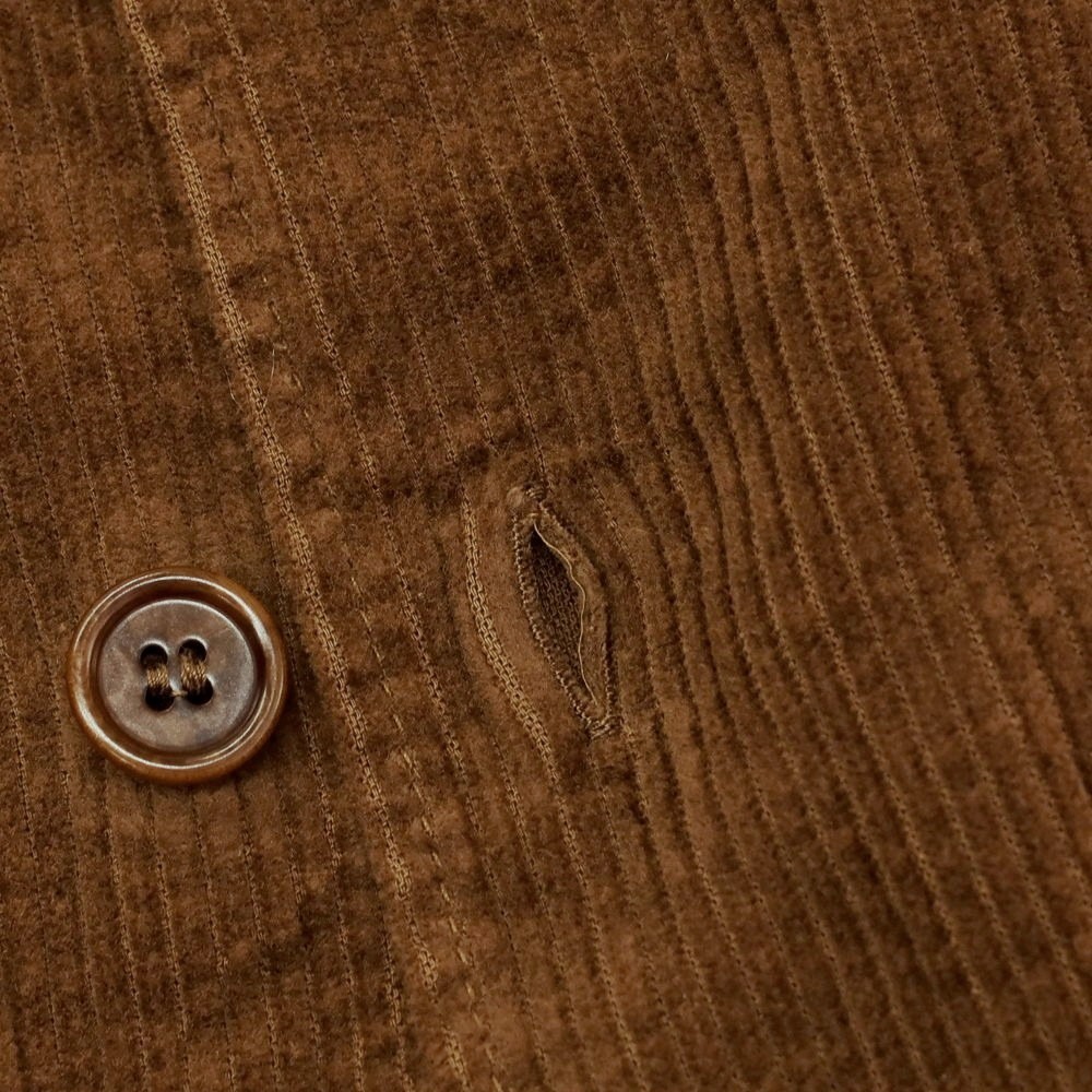 やや薄手の柔らかく滑らかなタッチの中太畝コーデュロイ生地を使用した、シャツブルゾンです。