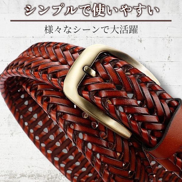 商品説明 | 【商品詳細】 ●素材 本革(牛革) ● カラー ブラック ● 仕様 サイズ 長さ120cm 幅 3.5cm 厚み 0.5cm (フリーサイズ) 長さ調節可能です 【商品説明】 存在感のある編み込みベルトは、先端まで施された美しい装飾が魅力的です。機械では実現できない編み込みの工程を手作業で行った高品質なアイテムで、リアルレザーならではの上品な手触りと光沢感をお楽しみいただけます。 デニムやジーンズ、チノパンなどのカジュアルスタイルにぴったり合い、スーツやスラックスと組み合わせることで大人の魅力を一層引き立てます。 本革製でありながらメッシュデザインなので通気性も抜群。バックルピンはどの位置にも刺せるため、穴あけ不要で、食後の調整も1㎝刻みで簡単に行えます。長さが余る場合は、バックル部分のネジを外してハサミでカットすることで調整が可能です。 こちらの商品は輸入品です。 説明書などございません。梱包は簡易梱包です。 |