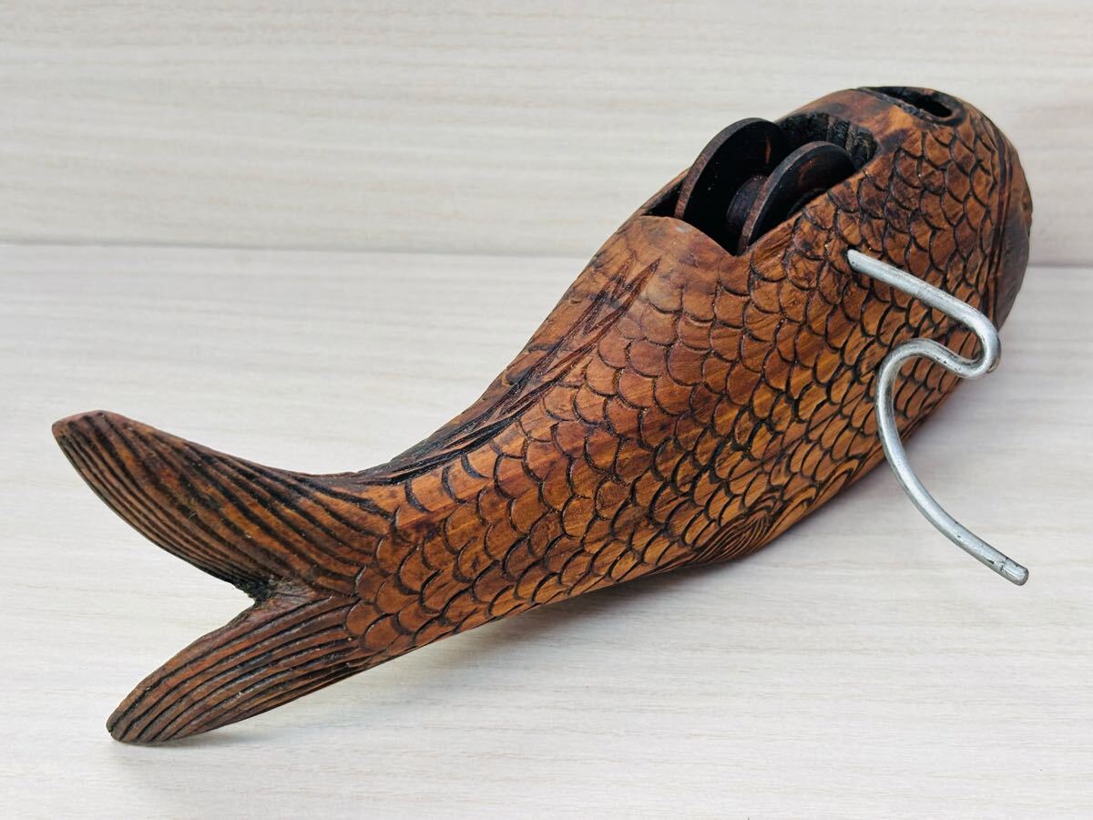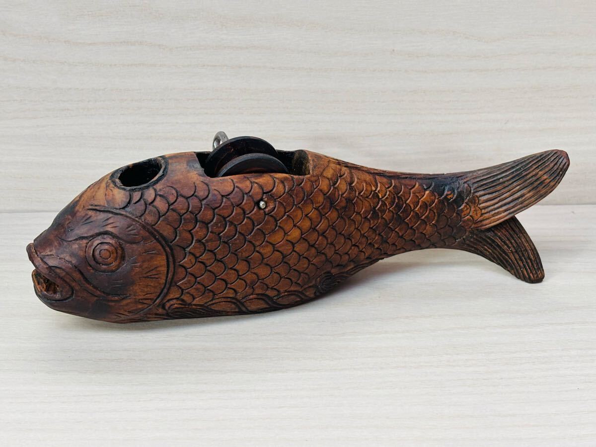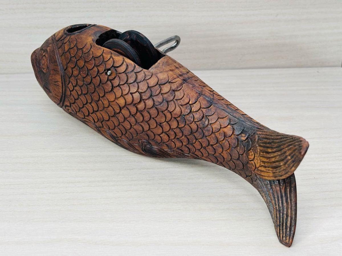 鯉彫墨壺 工芸品 アンティーク  墨壺 墨壷 墨坪 墨ツボ 墨つぼ すみつぼ 大工道具 鯉彫 珍品 彫刻 木彫
