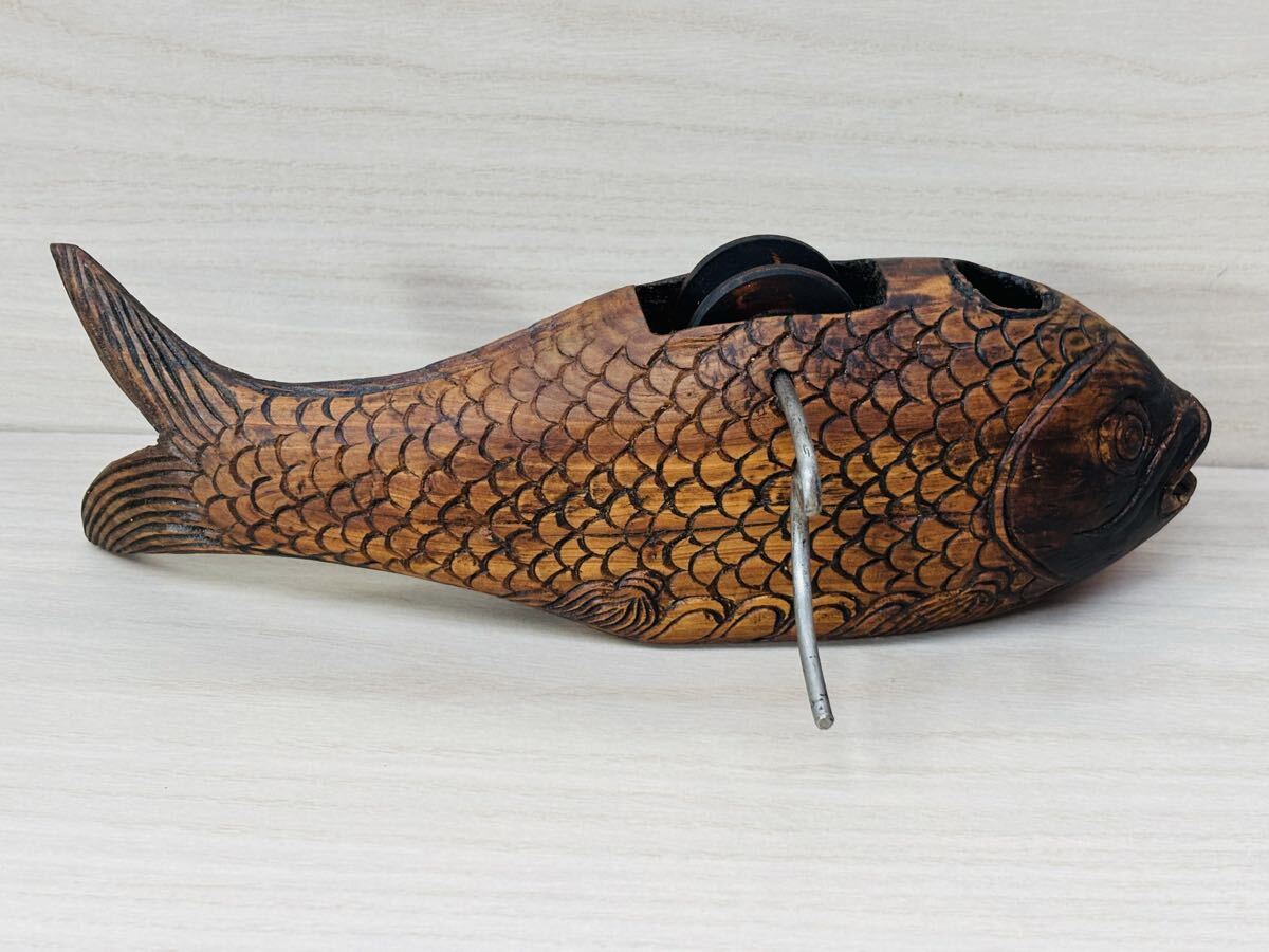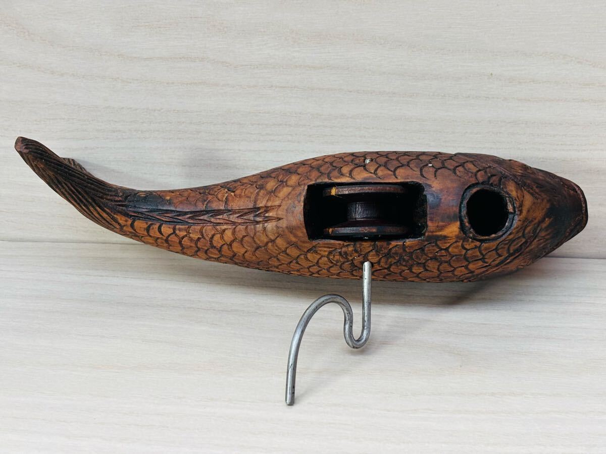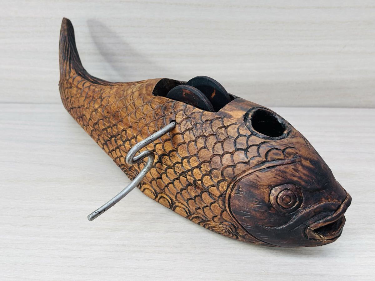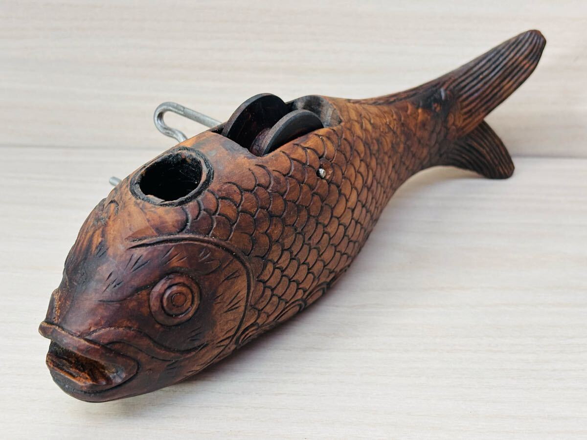 鯉彫墨壺 工芸品 アンティーク  墨壺 墨壷 墨坪 墨ツボ 墨つぼ すみつぼ 大工道具 鯉彫 珍品 彫刻 木彫