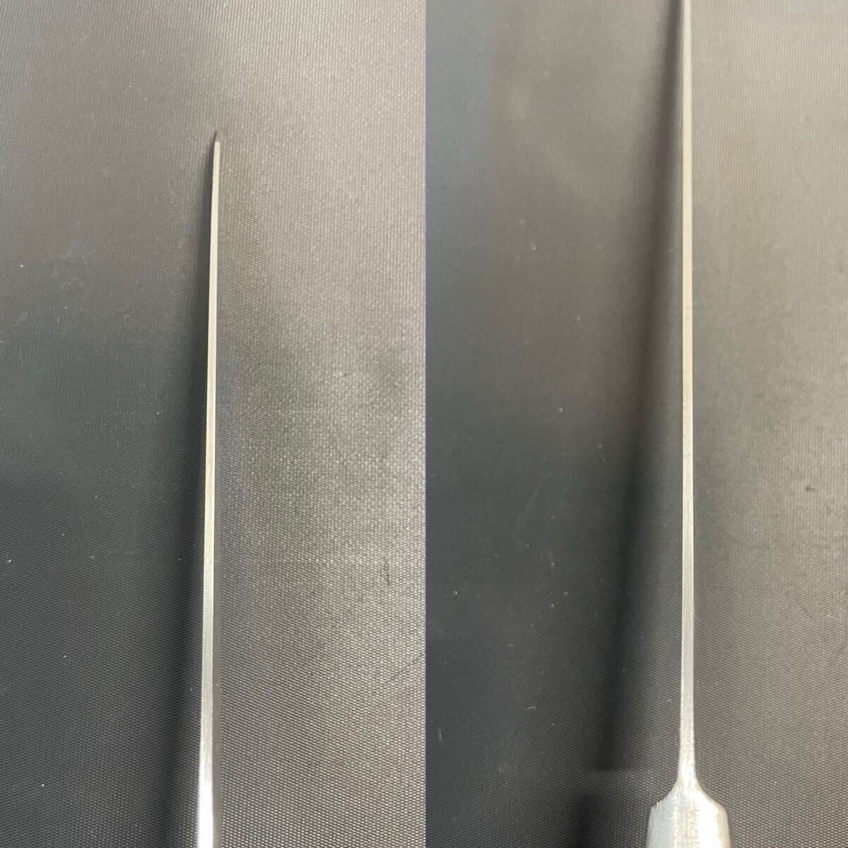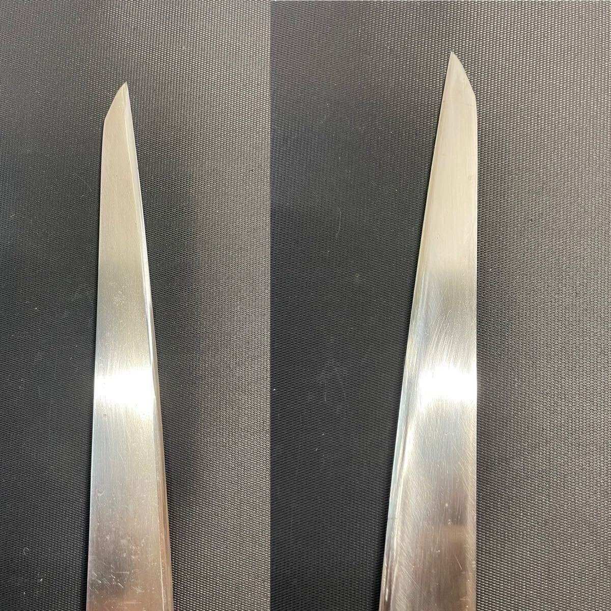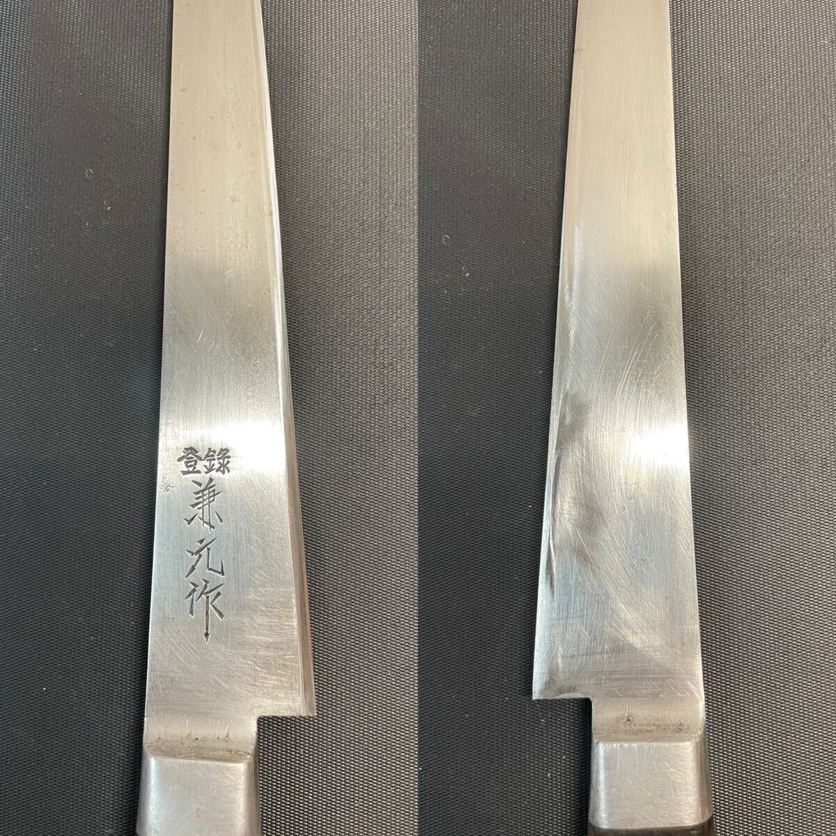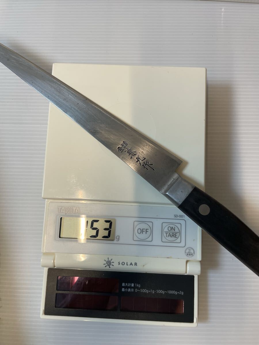 中古の包丁です。研ぎが足らない場合は必要に応じて再研ぎしていただければ、まだまだお使いいただけると思います。