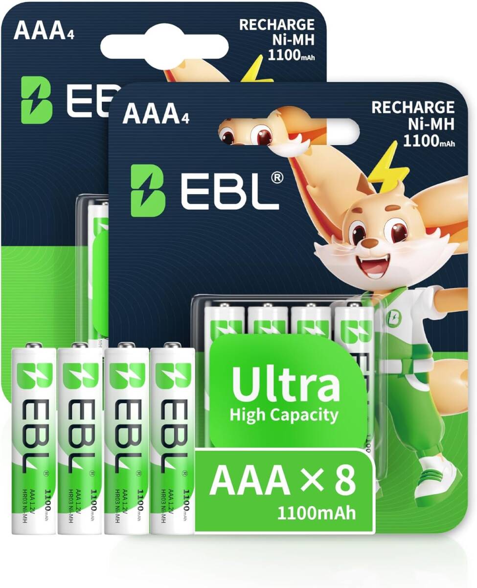 EBL 単4充電池 充電式 ニッケル水素充電池 8本入り 高容量充電池 1100mAhで長持ち 約1200回使用可能 単四充電池 AAA充電池8本パック 防災電池