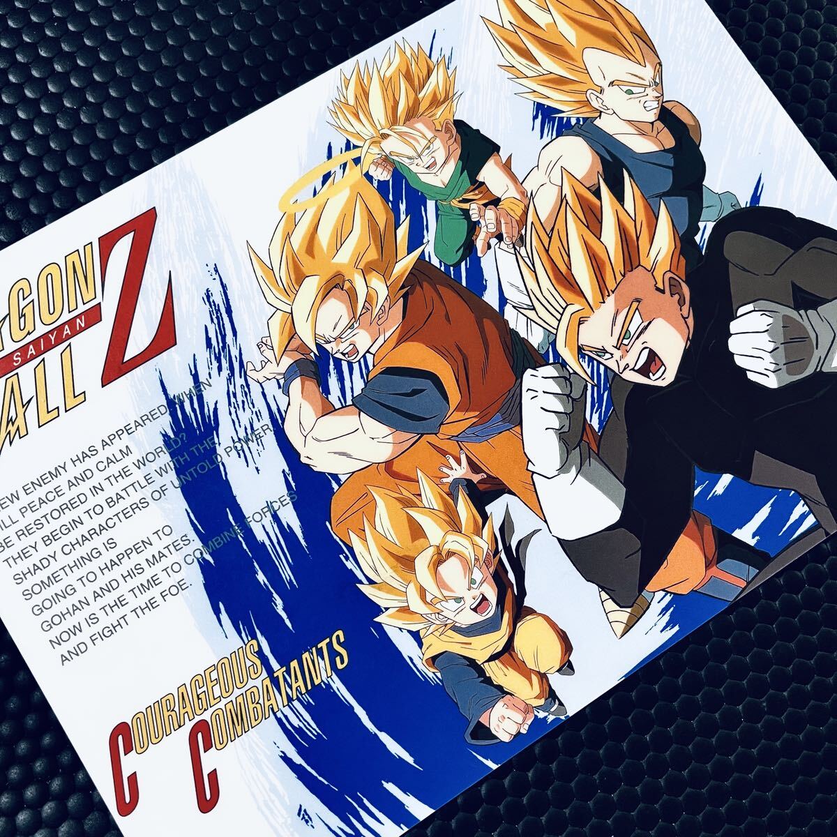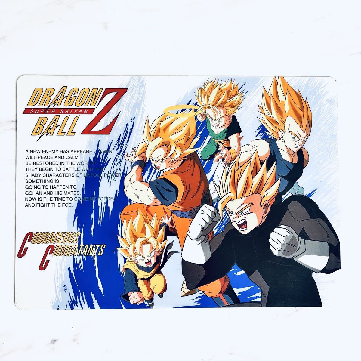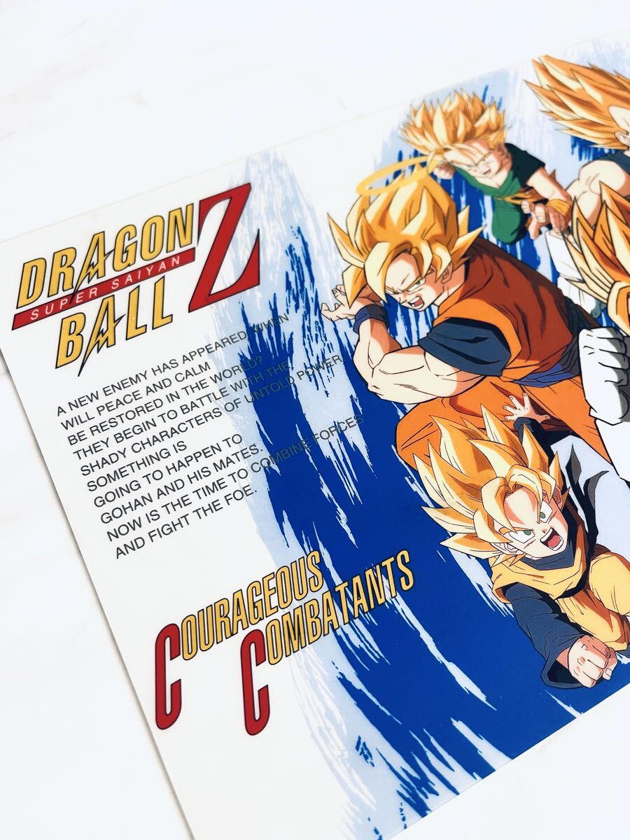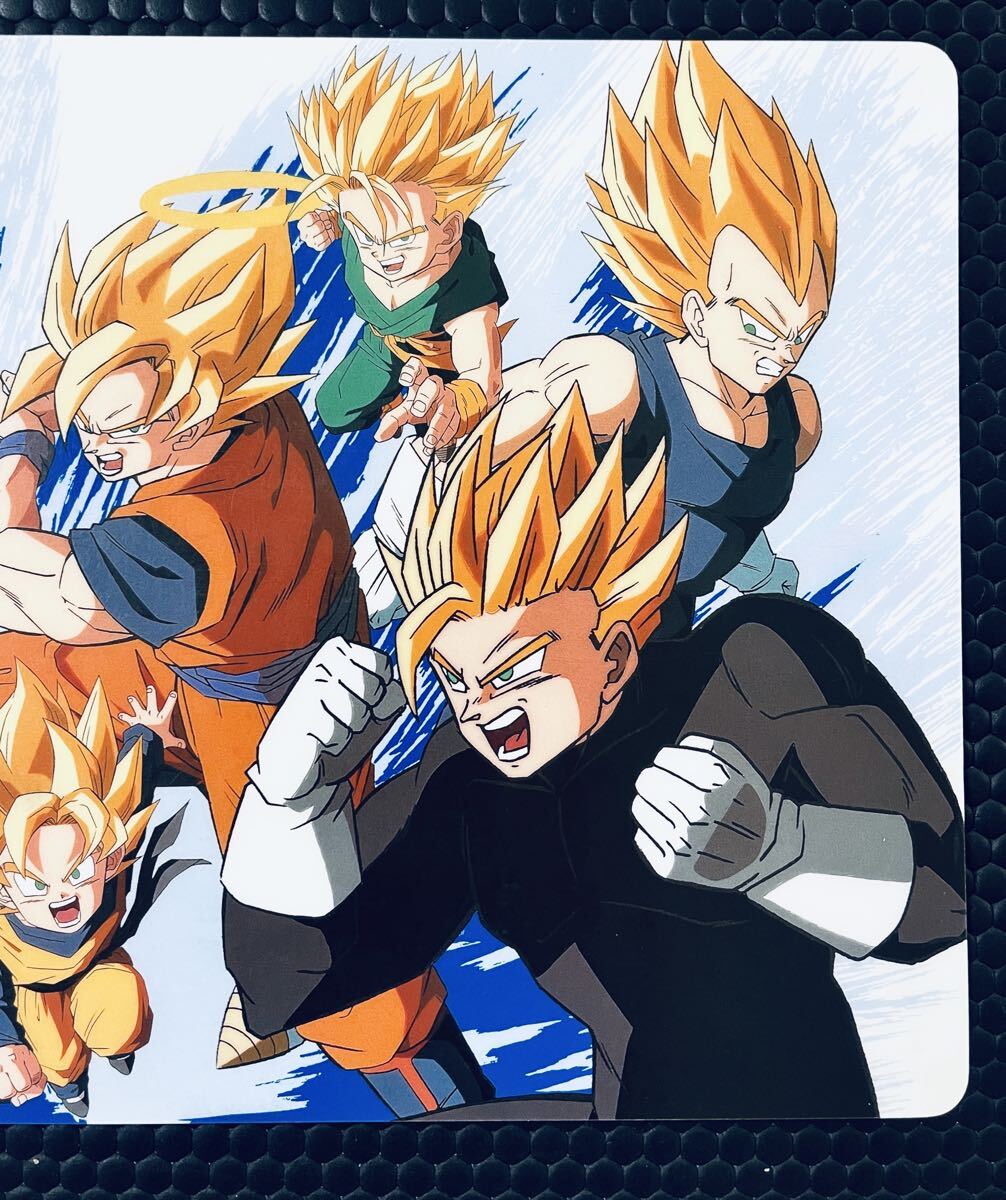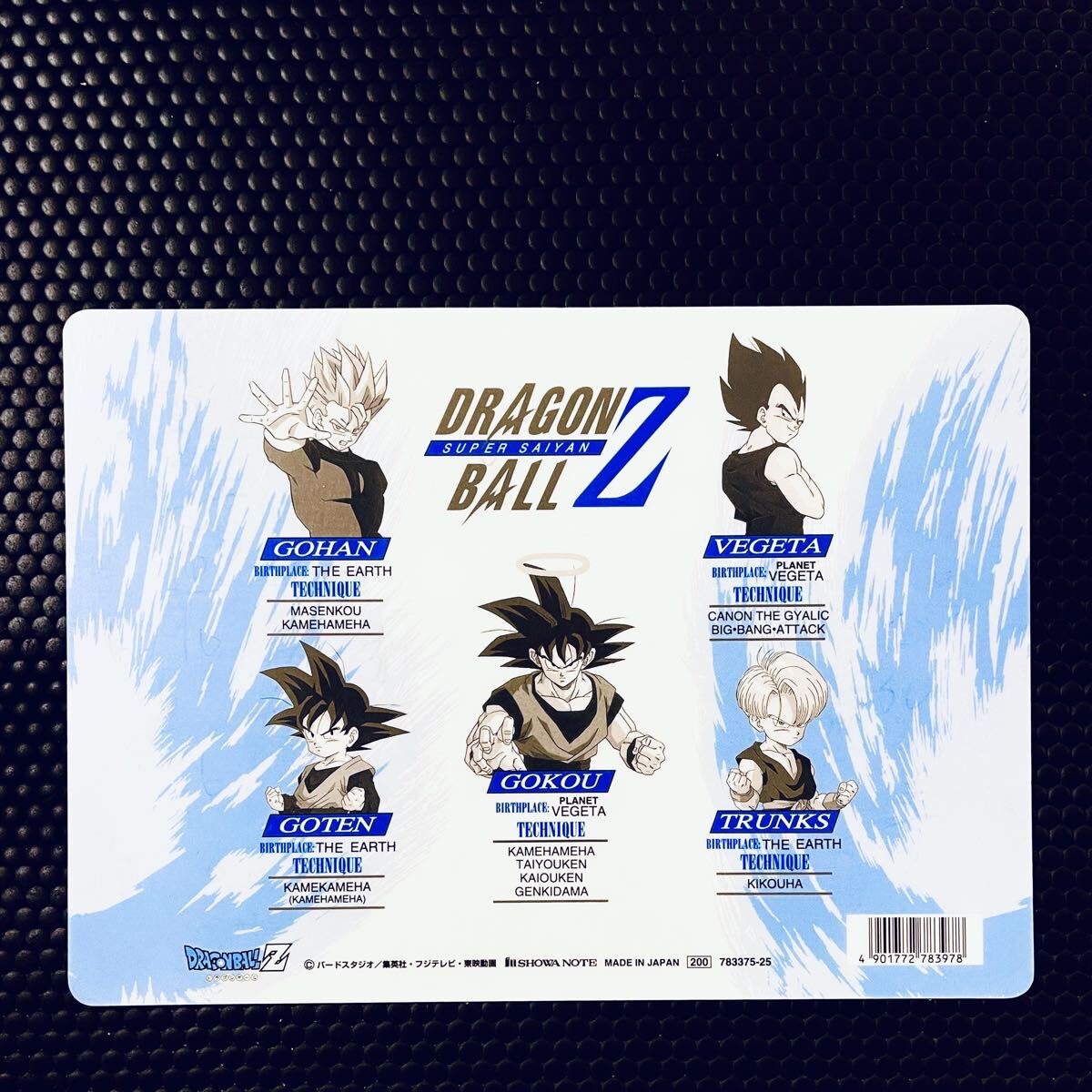 表はZ戦士の超サイヤ人姿、裏は悟空たち5人のデータが描かれた下敷き。