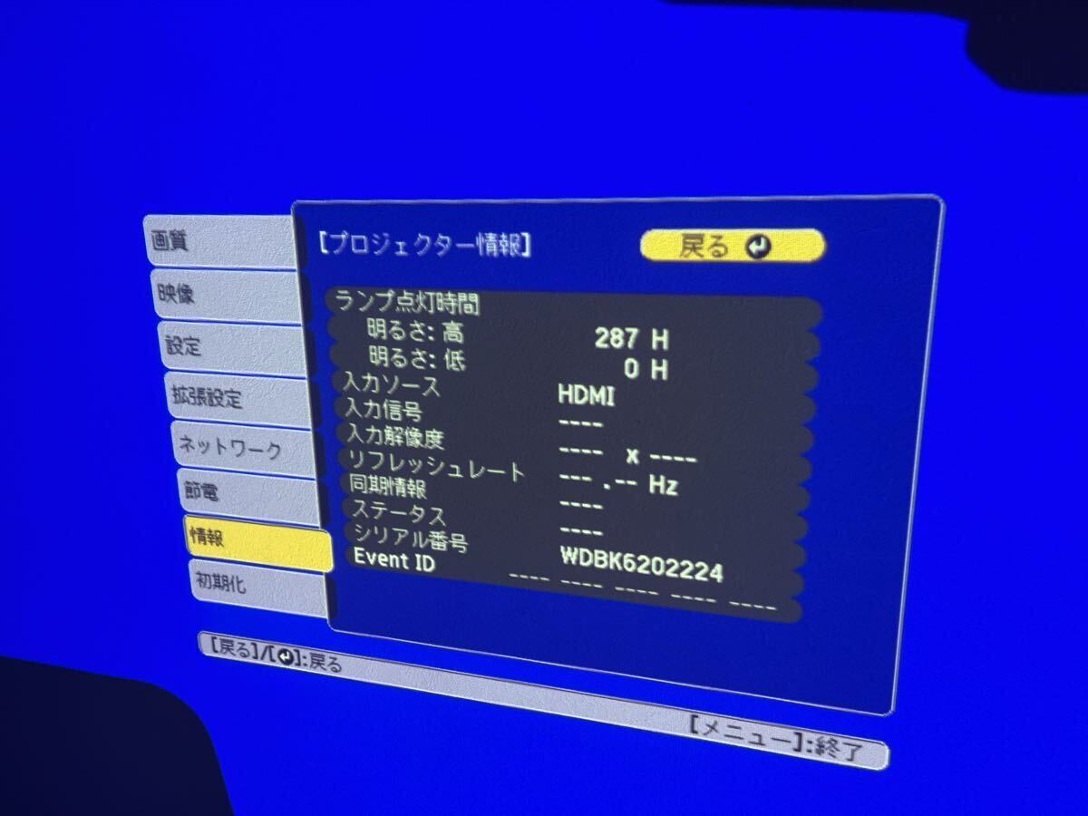 24.41 EPSON◆エプソン EB-W420 プロジェクター ランプ 使用時間287H◆