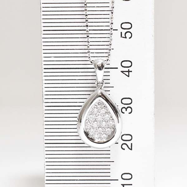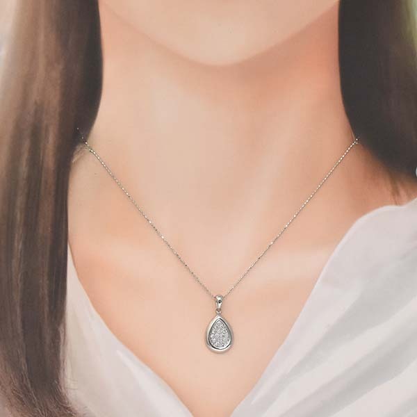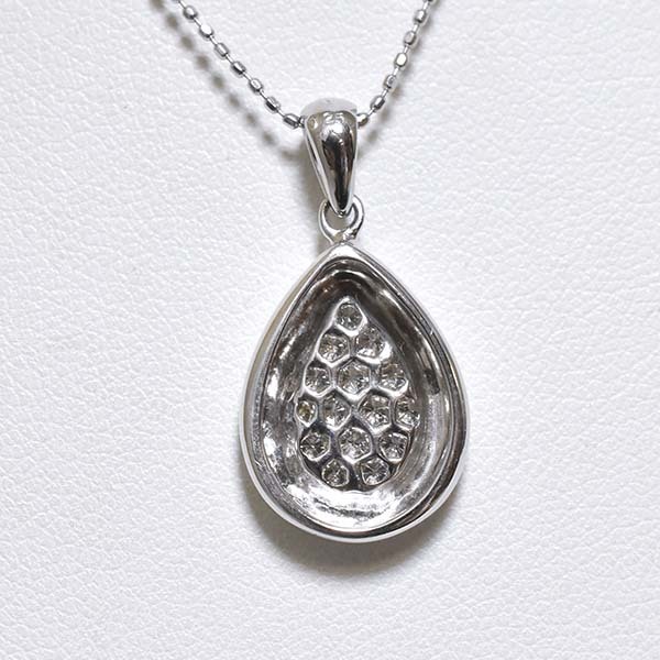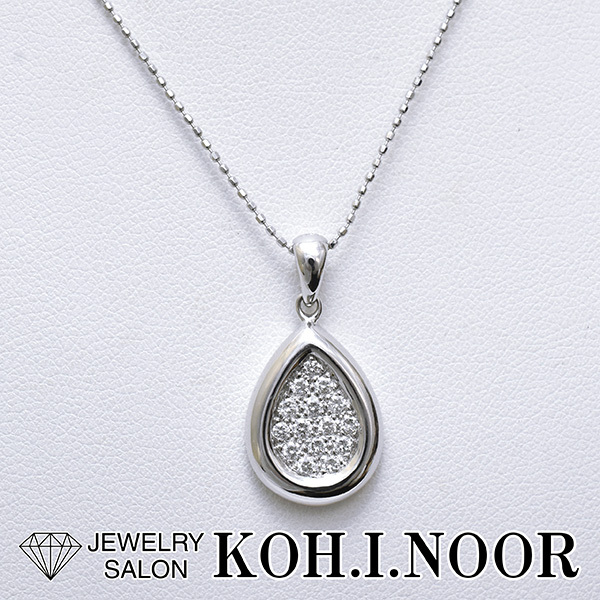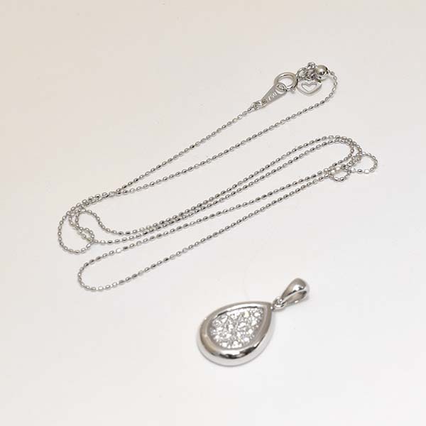 雫モチーフにダイヤを敷き詰めた18金ホワイトゴールド製のペンダントネックレス。