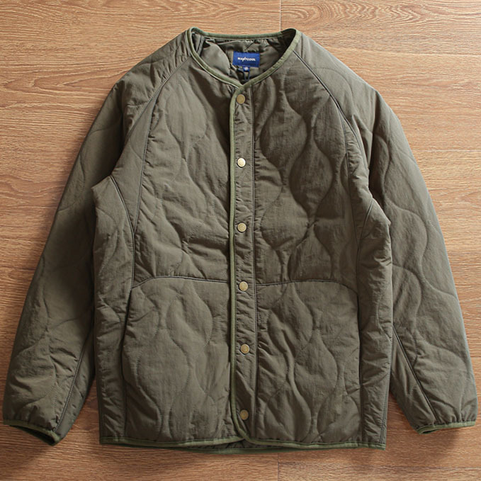 Y6525-2XL オリーブ 新品 中綿ジャケット ノーカラー キルティング シンサレート 暖かさ 軽量 秋 通気 撥水 防風 メンズ アウター トップス