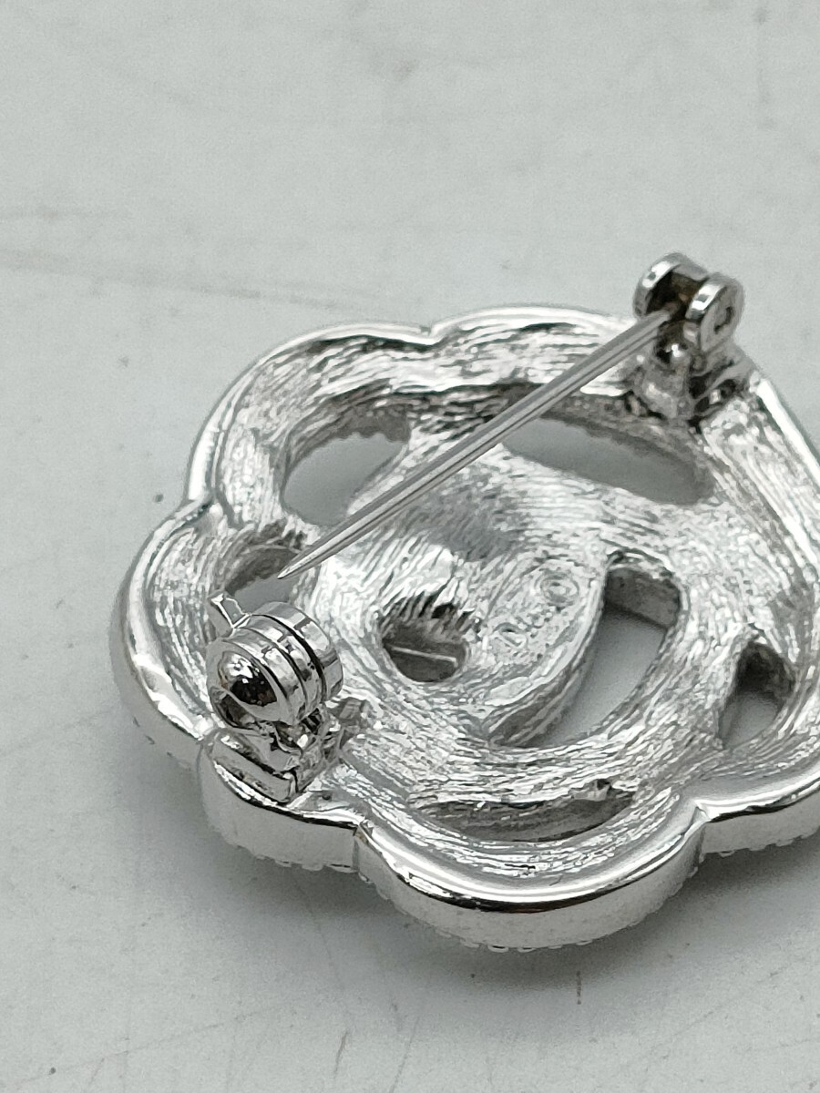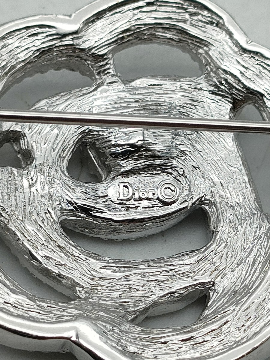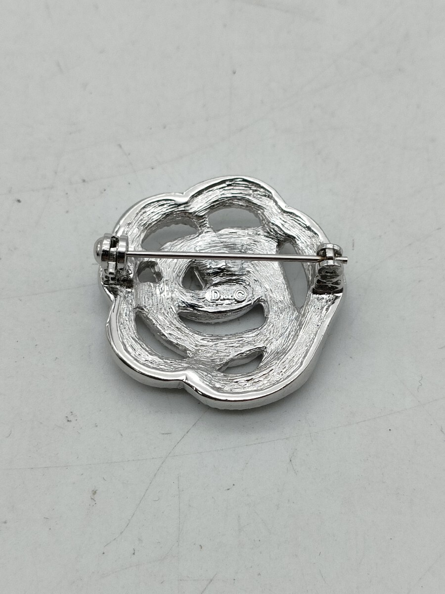 1円〜 Christian Dior クリスチャン・ディオール ブローチ ラインストーン シルバーカラー フラワー バラ 薔薇 シルバー系 アクセサリー