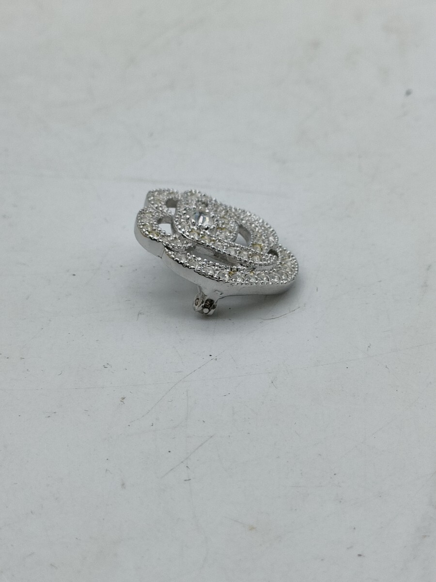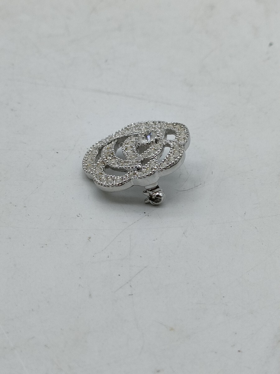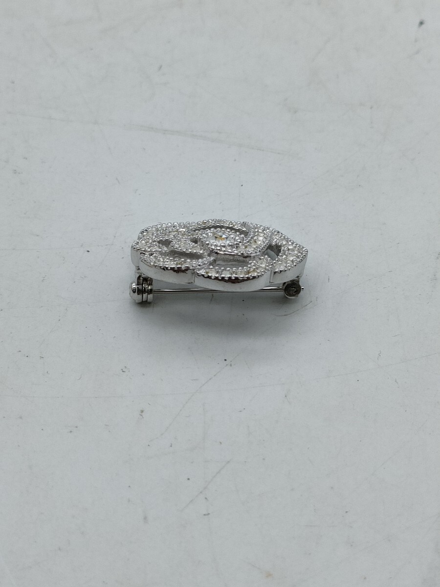 1円〜 Christian Dior クリスチャン・ディオール ブローチ ラインストーン シルバーカラー フラワー バラ 薔薇 シルバー系 アクセサリー