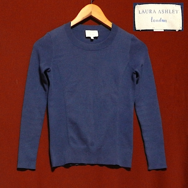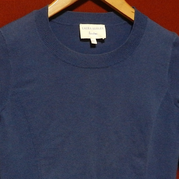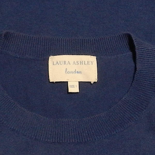 LAURA ASHLEY london ローラアシュレイ スリムフィット 脇 切り返し 薄手スエット ストレッチ 薄手ニット カットソー 紺 レディース 1 / S
