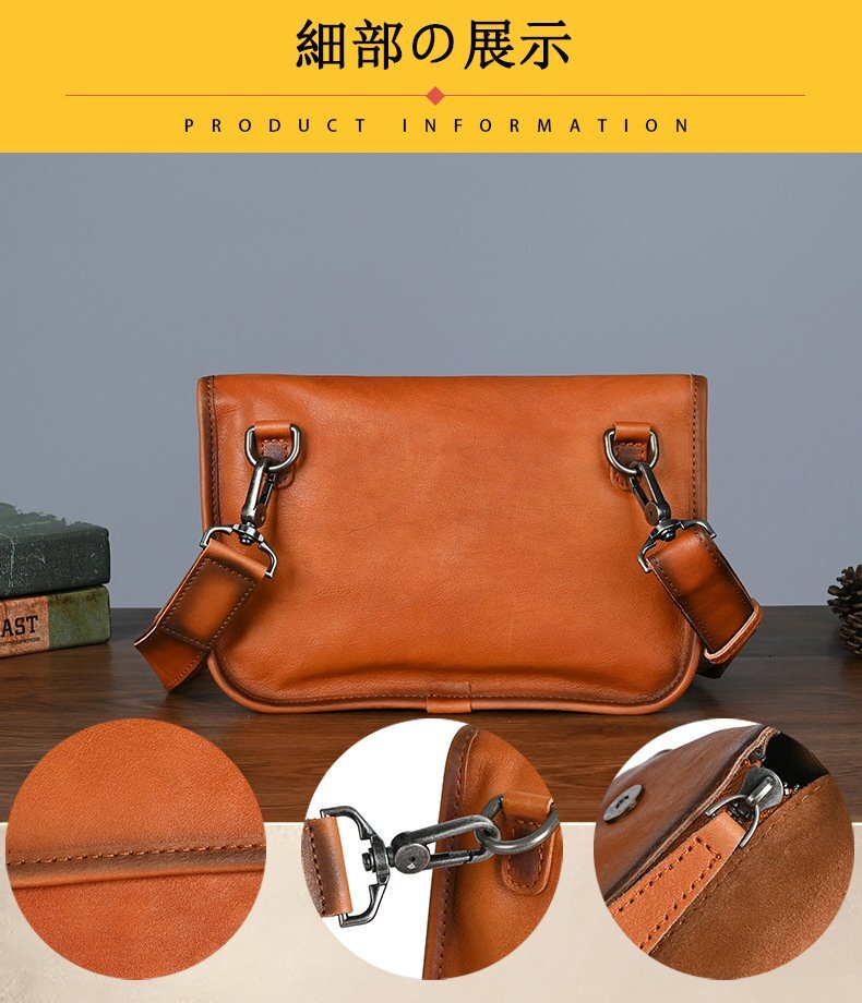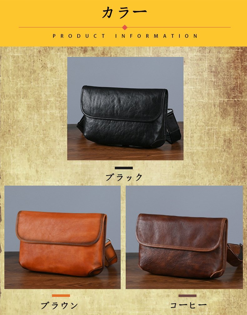商品詳細 ◆素材(外側):牛革 ◆カラー: ブラウン、ブラック、コーヒー ◆サイズ:横24cm×縦17cm×マチ5cm ショルダーベルト(調節可能) ◆収納可能サイズ: 財布、メガネ、化粧品など、携帯電話、時計 支払詳細 ★Yahoo!簡単決済 ★ご落札後24時間以内入金に関することを