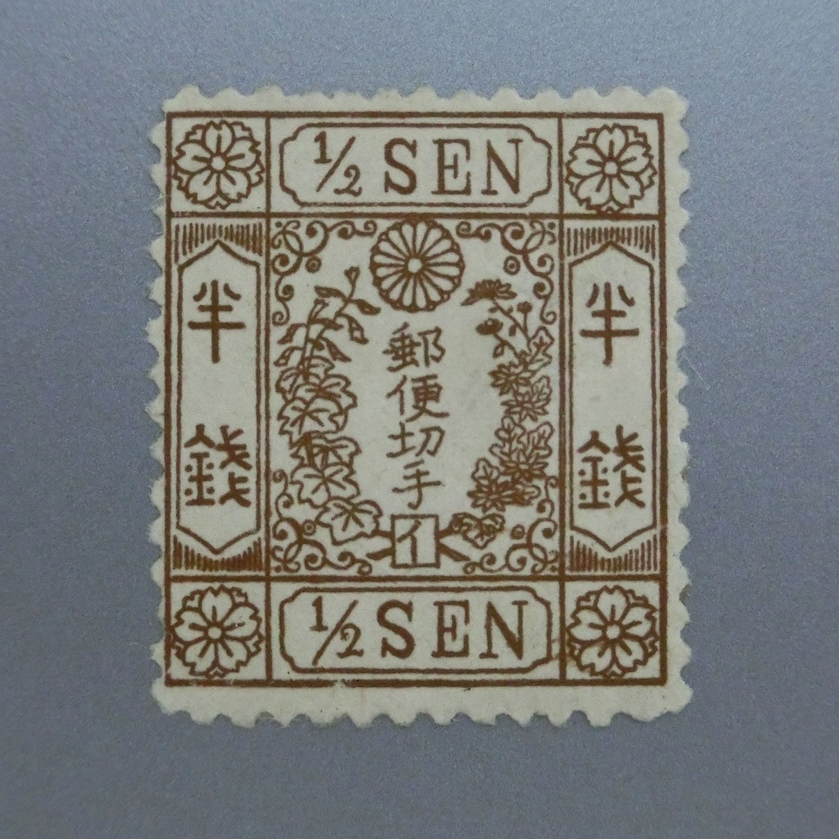 手彫切手 桜切手 洋紙 半銭 褐色 仮名イ 未使用 希少 (A02)