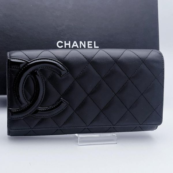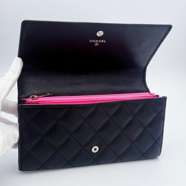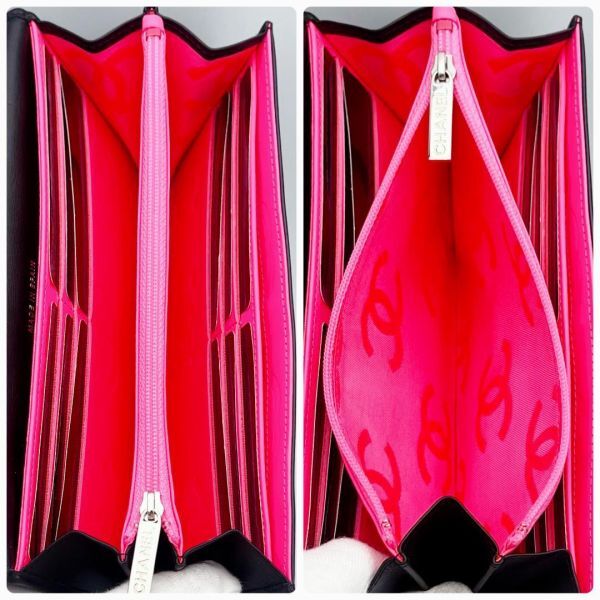 「シャネル カンボンライン 黒×ピンク ウォレット」