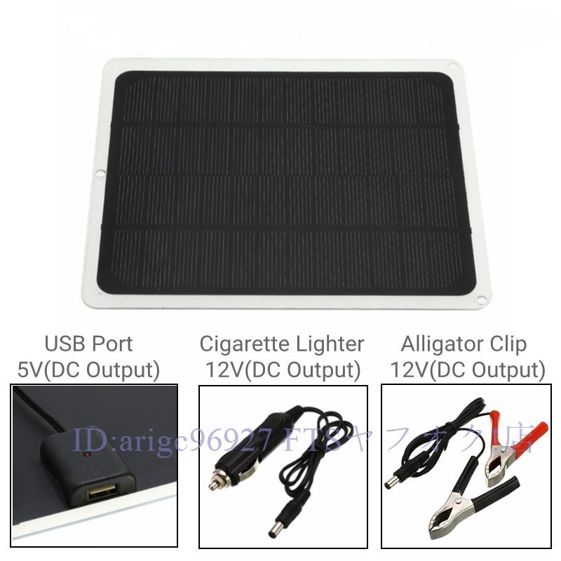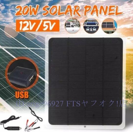 ★新品20W 12V車用 充電器付き デュアル出力 ソーラーパネル 屋外 キャンプ LEDライト用 USB ソーラー充電器 20A