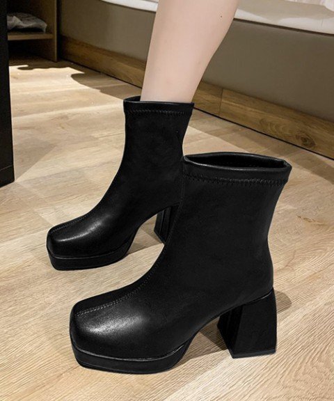 安定感のある太ヒールで歩きやすい厚底ショートブーツ