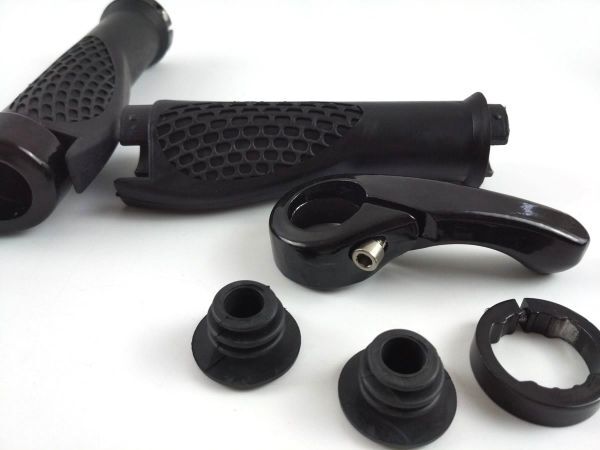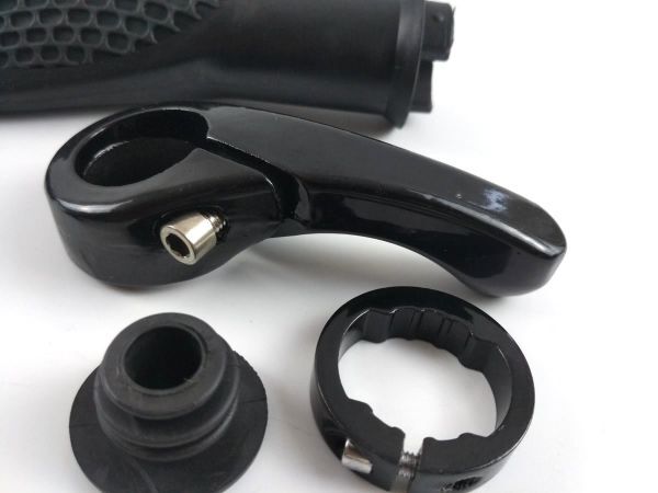 アルミロックオングリップ 肉薄なので手の小さな方でもしっかりと握れます。 カラー:写真1枚めの通り サイズ:13cm 対応ハンドル径:22.2mm エンドキャップ付属 左右セット(1台分) 自宅保管の未使用品です。 パッケージはありません。 |