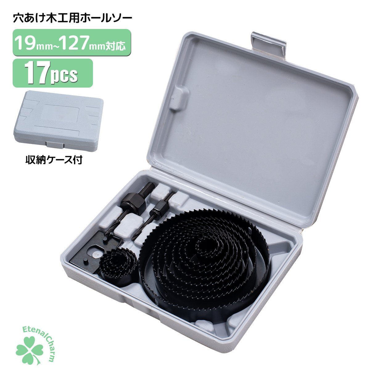 【送料無料】ホールソー 17点セット 木工 石膏ボード プラスチック 電動ドリル用 収納ケース付き DIY 家庭用 穴あけ工具