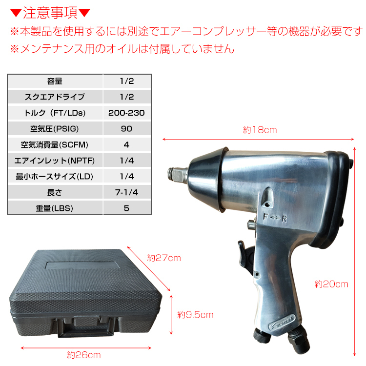 ※本製品を使用するには別途でエアーコンプレッサー等の機器が必要です。