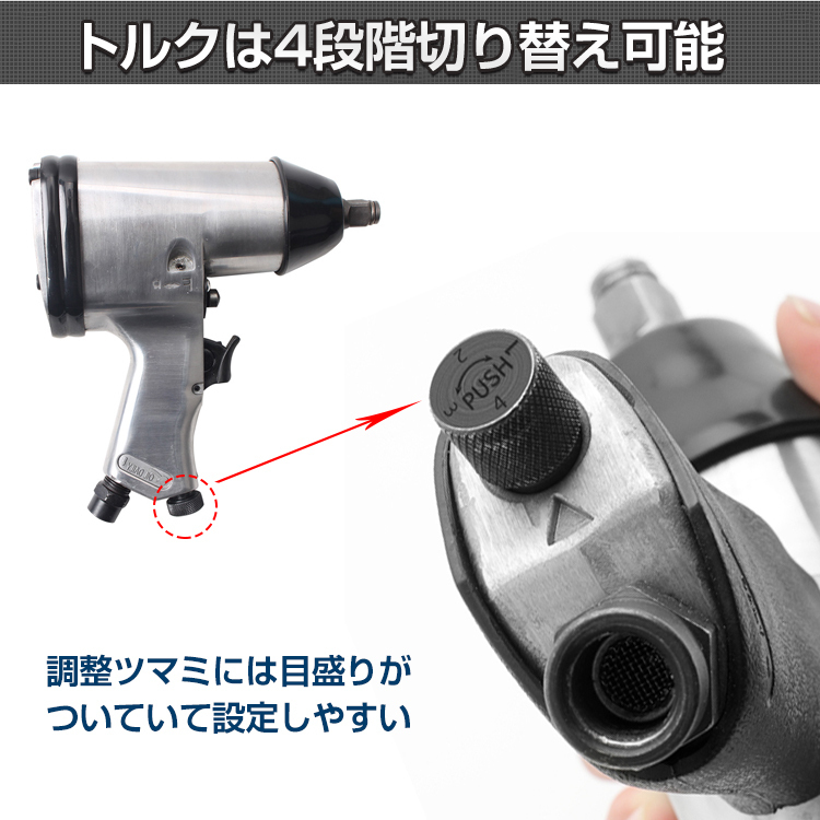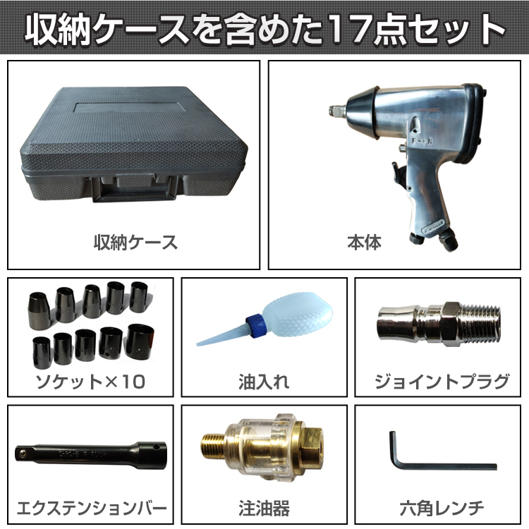 工具 エアー インパクトレンチ 17pcs セット エアーツール トルク調整 収納ケース付き タイヤ交換 点検 メンテナンス 自動車 バイク ny346