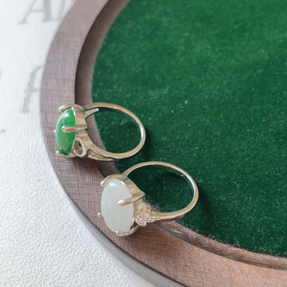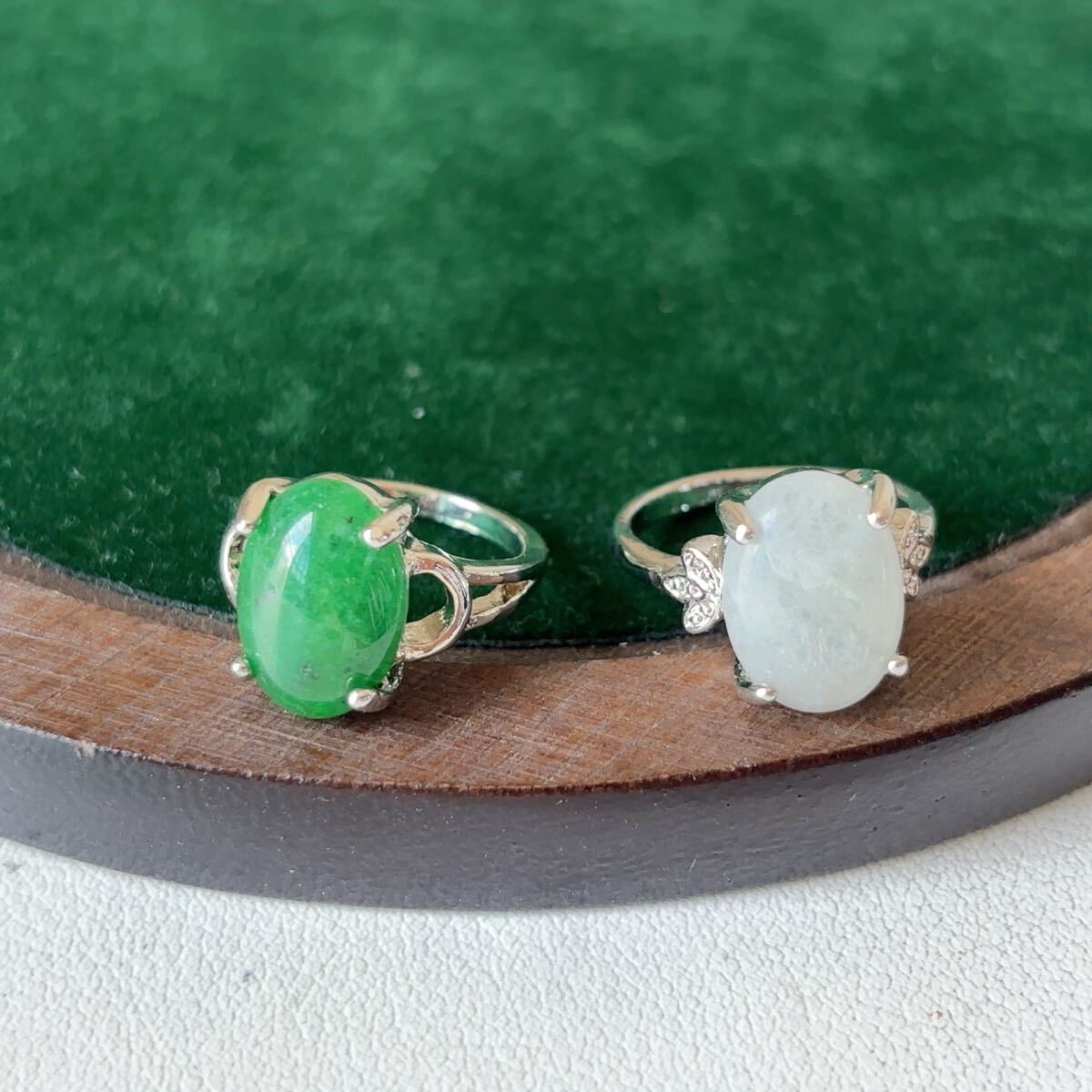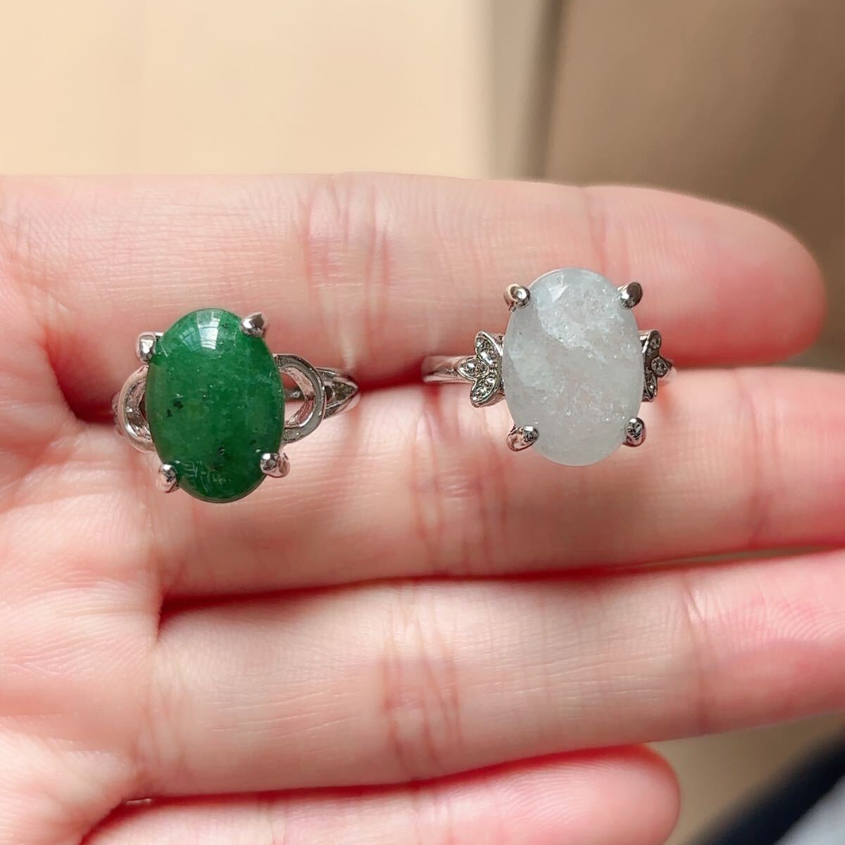 訳あり♪東陵玉+台湾碧玉 計2点セット♪指輪♪リング♪フリーサイズ♪翡翠・ヒスイ♪天然石♪パワーストーン♪プレゼントにもR359242