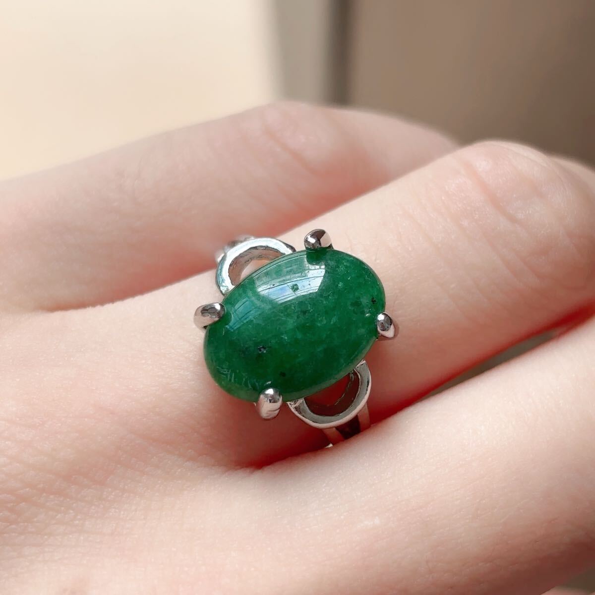 緑色リング台湾碧玉です、石に少し欠けがあります。 サイズは約9.5号です。