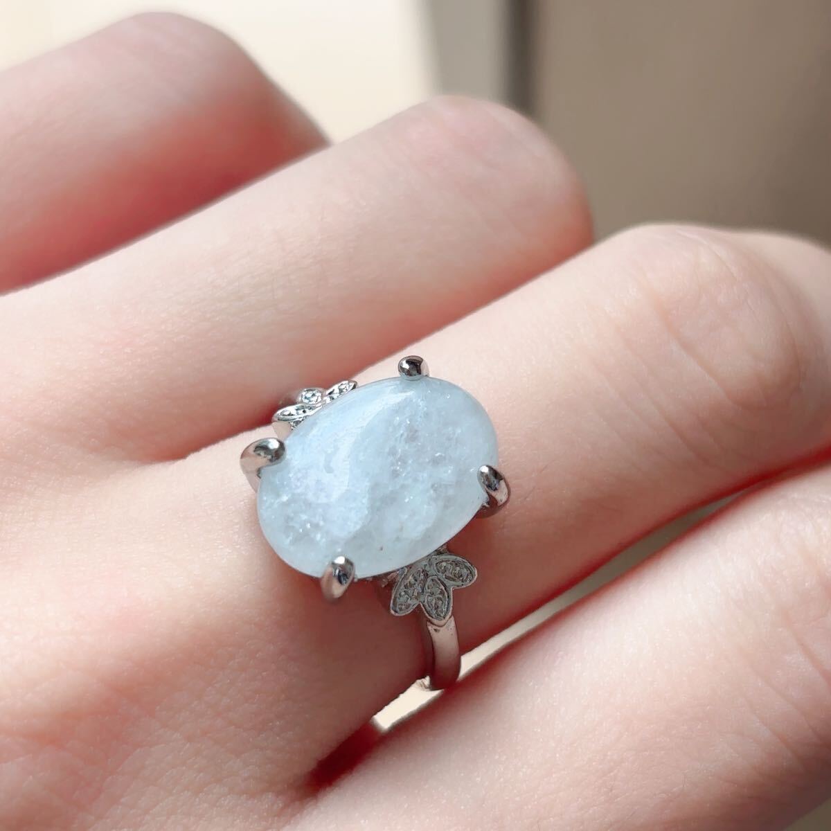 薄水色リング東陵玉です、石に欠けがあります。 サイズは約11号です。