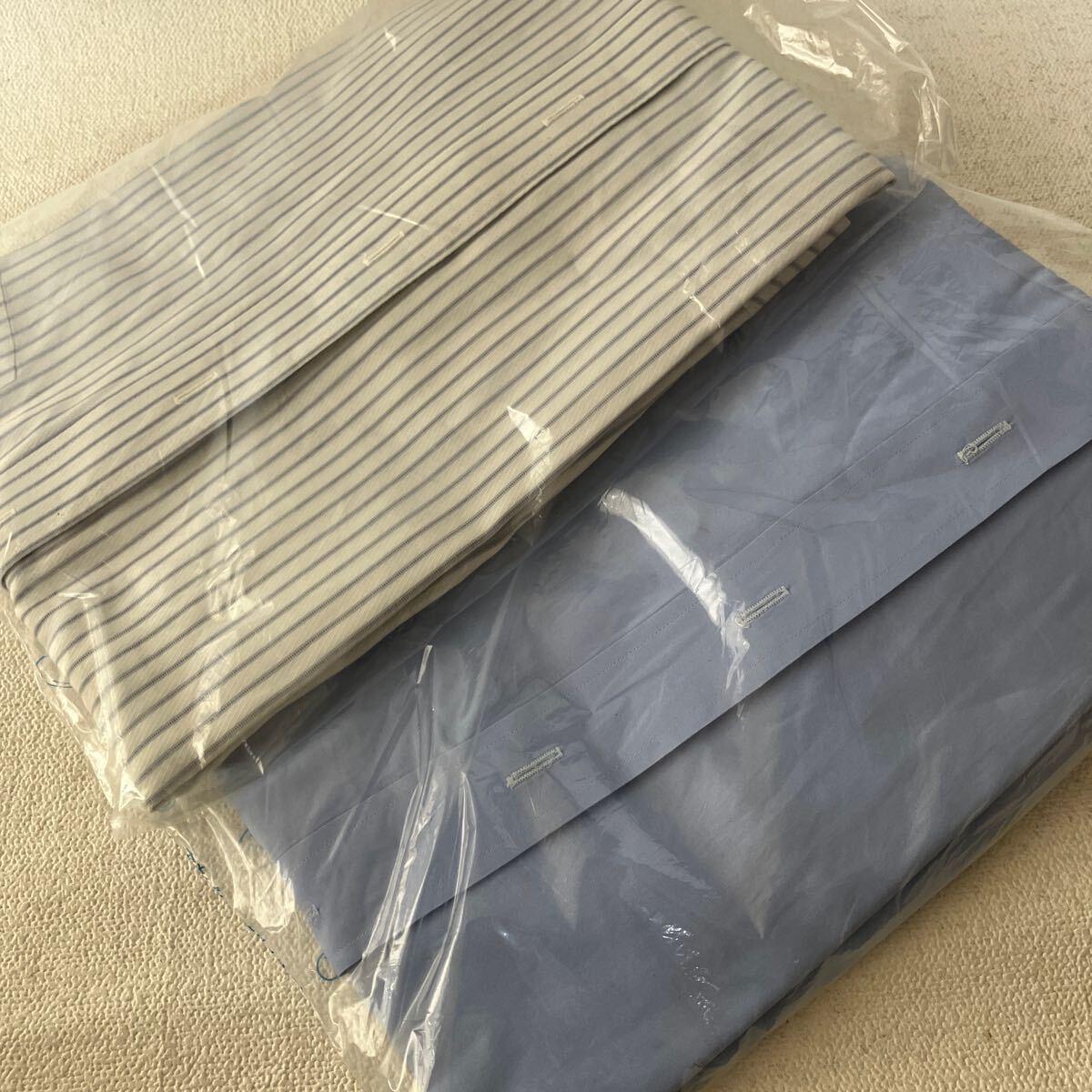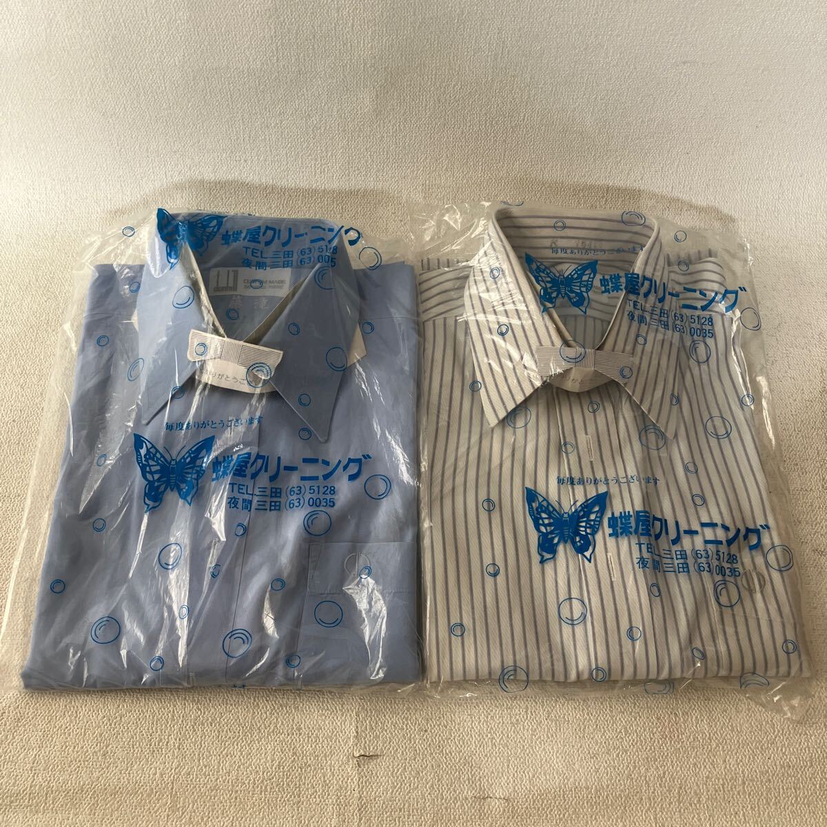 c1120 80 ワイシャツ 2枚 まとめて カッターシャツ 紳士 ビジネス 長袖 ブルー 無地 ストライプ Yシャツ シンプル 名前入り