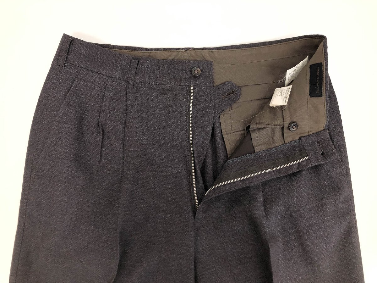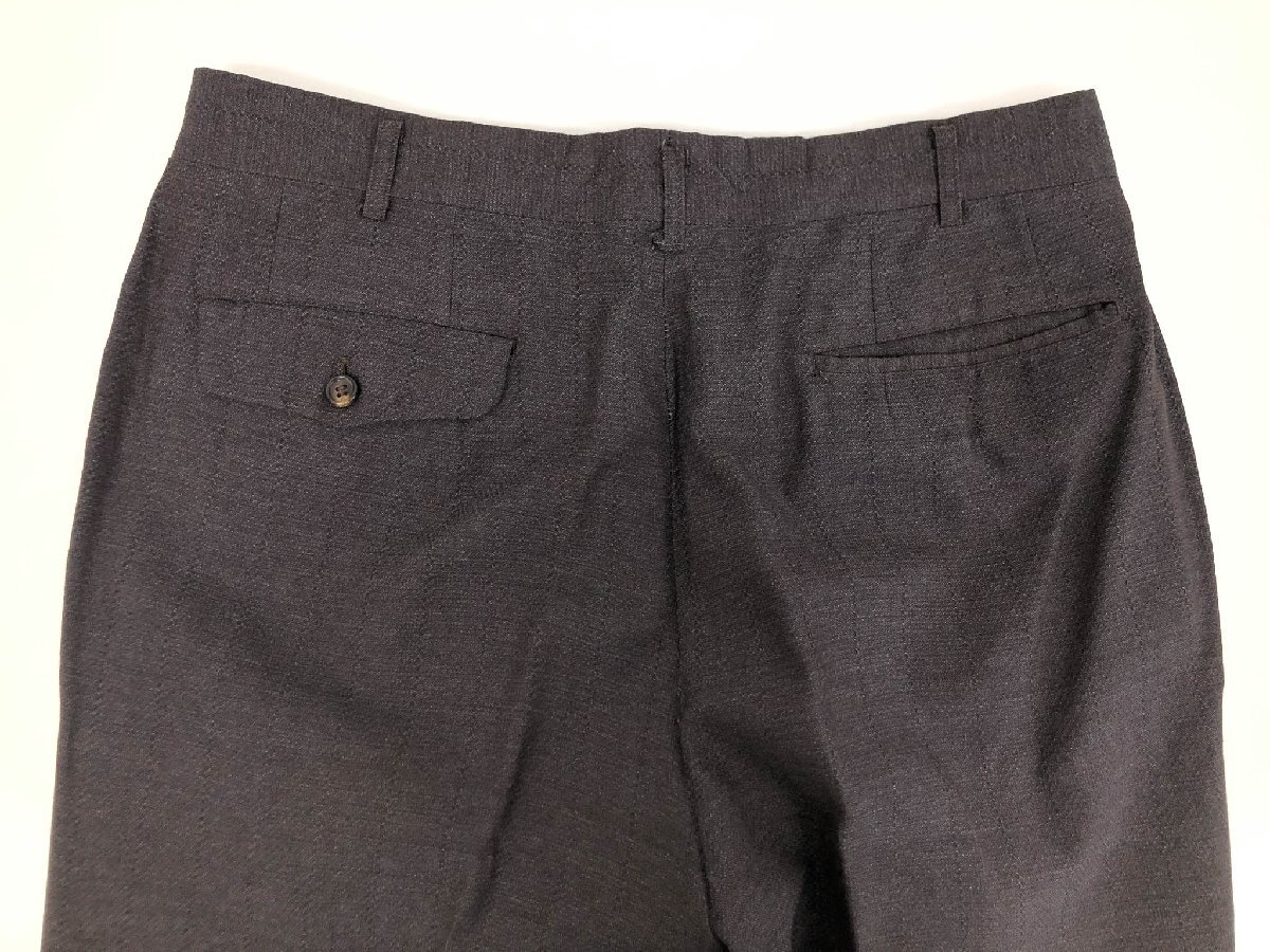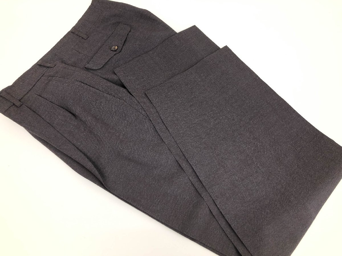 ・スラックス・・・ウエスト実寸約80~81センチ(0センチ出し、4センチ詰めが可能)、股上約31センチ、渡り幅約34~35センチ、股下約72センチ、総丈約102~103センチ、裾幅約22.5センチ、シングル仕上げ(最大でプラス7センチ長くできます)