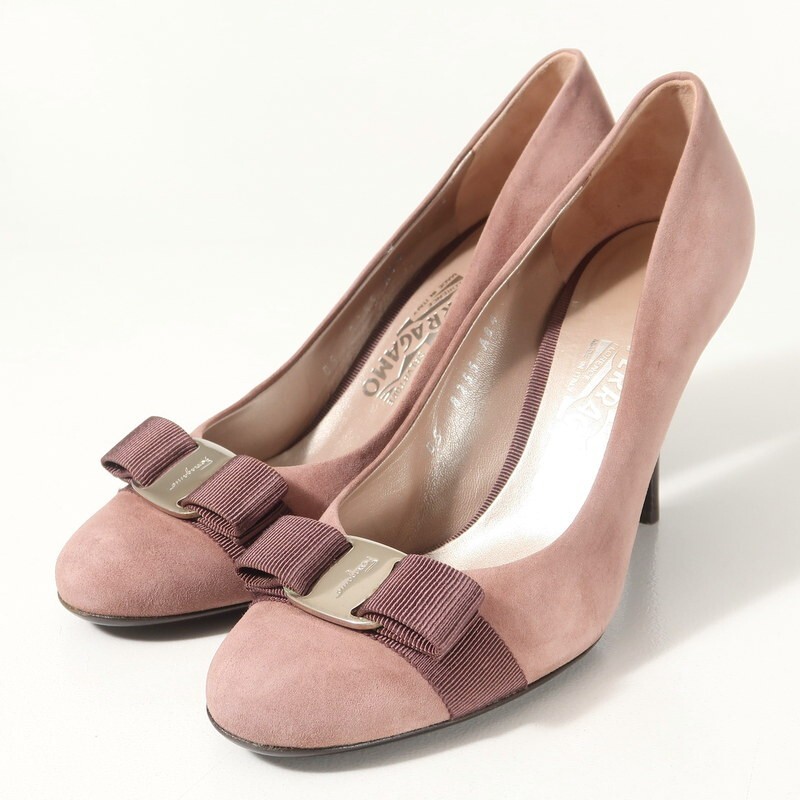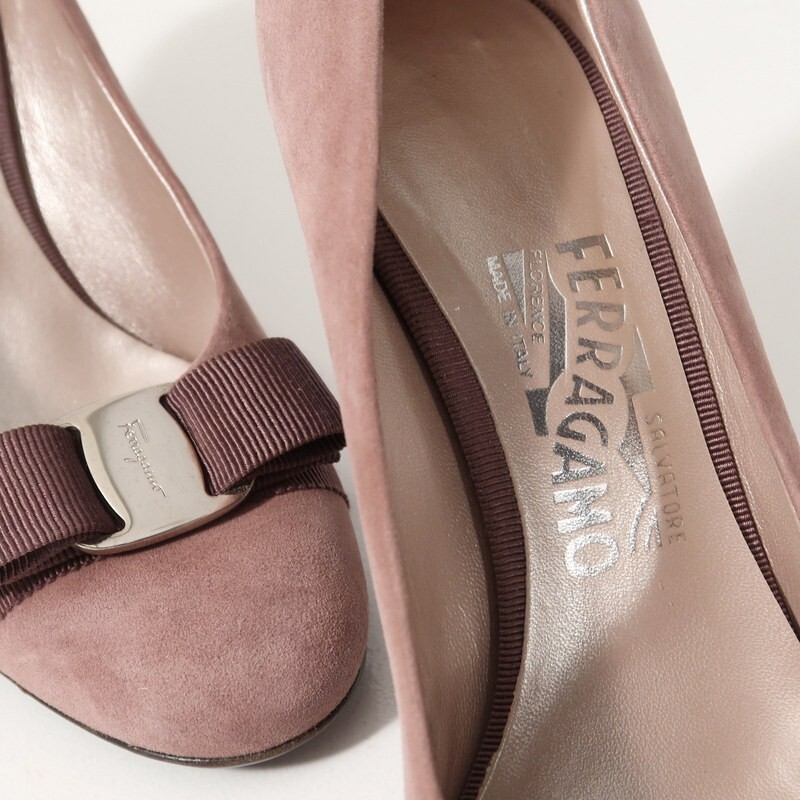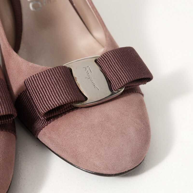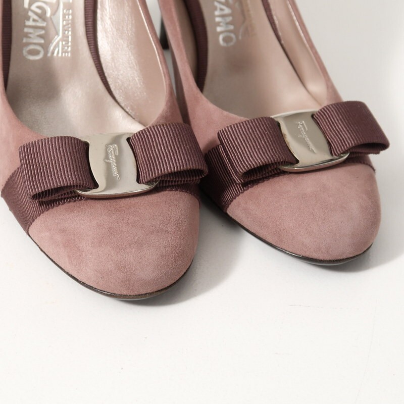 | MI1301*イタリア製 サルヴァトーレフェラガモ Size 7C スエードレザー ヴァラリボン パンプス 靴 パープル系 Salvatore Ferragamo | |||