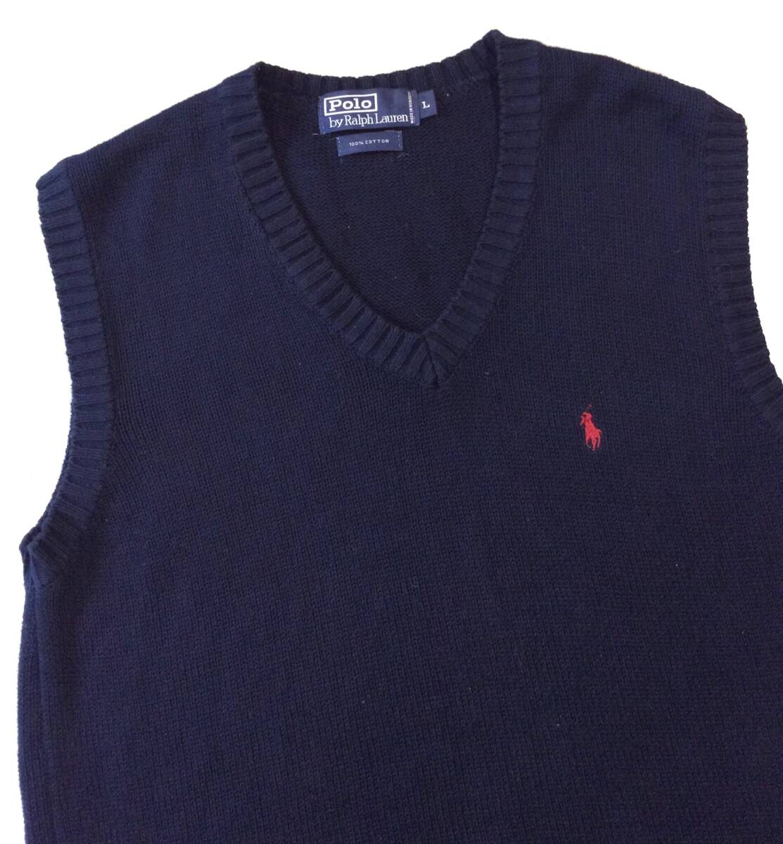 POLO RALPH LAUREN ラルフローレン ニットベスト セーター ネイビー コットンニット ベスト ジャケット メンズ L