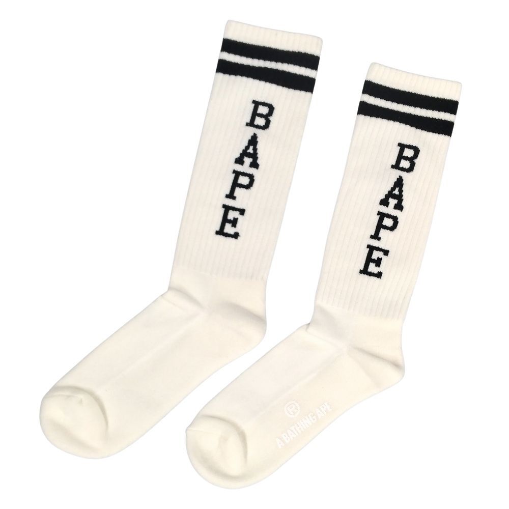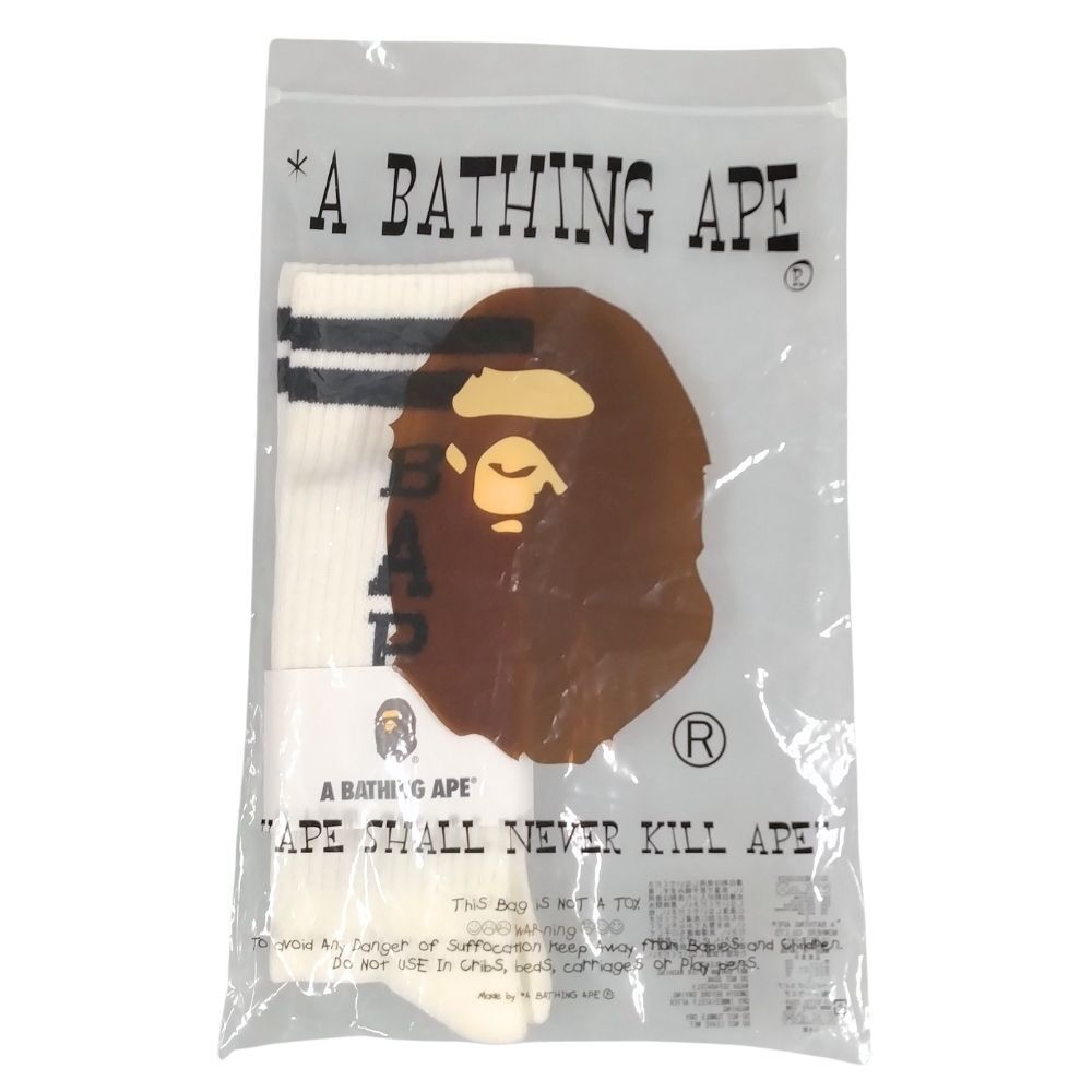 A BATHING APE アベイシングエイプ BAPE ロゴ ソックス 靴下 ホワイト サイズL 正規品 / 40538