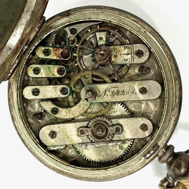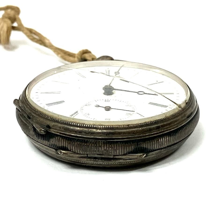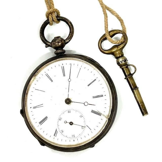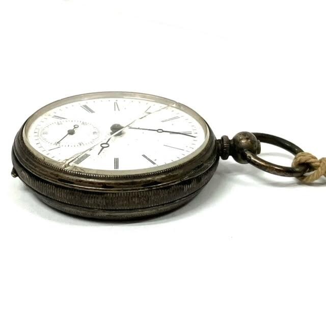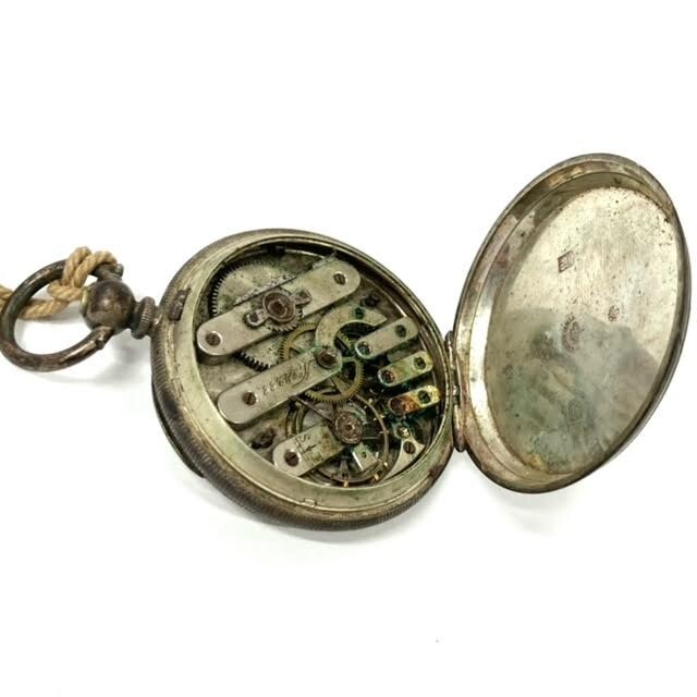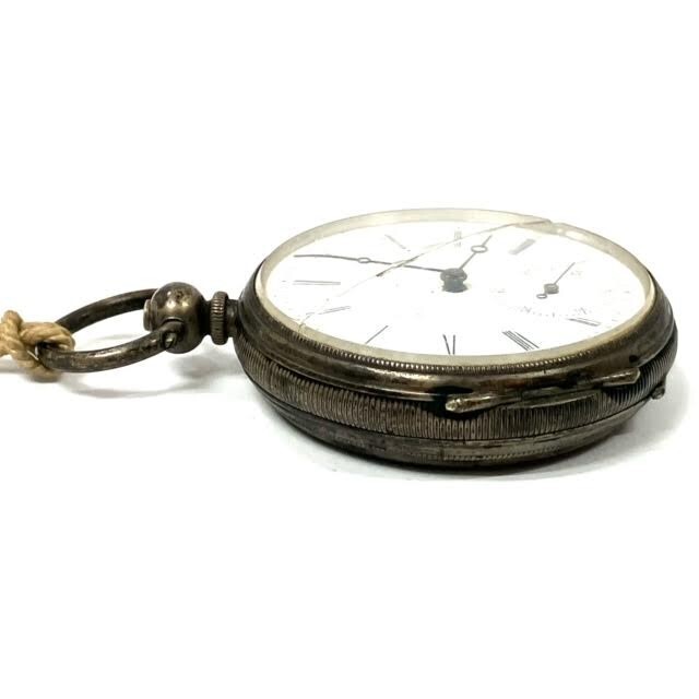 仙104 コロン商会 懐中時計 商館時計 FINE SILVER ARGENT 刻印 手巻き 鍵巻き スモセコ アンティーク レトロ 銀製 シルバー 部品取り
