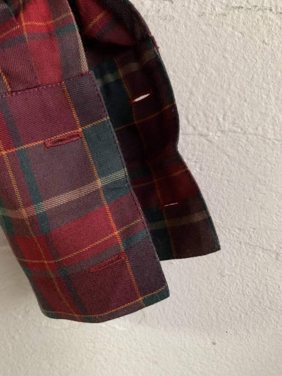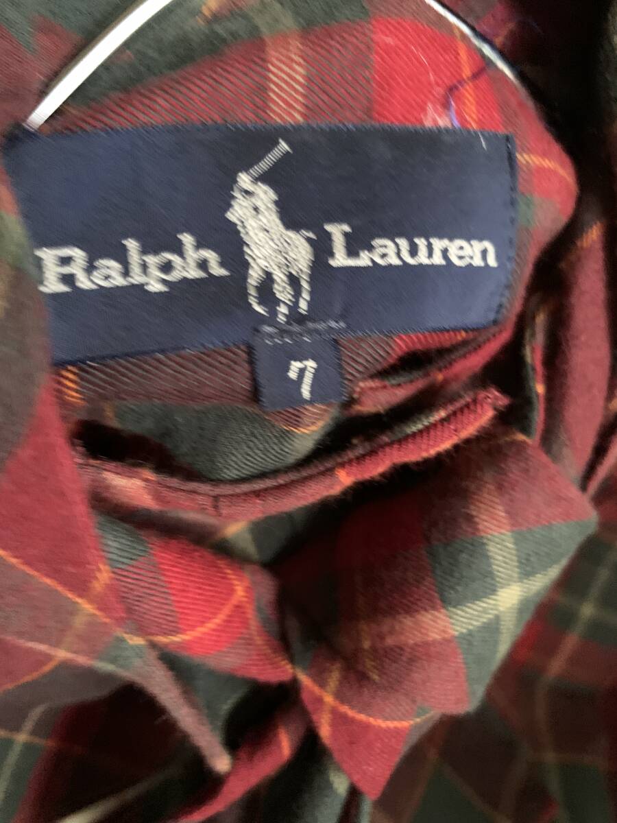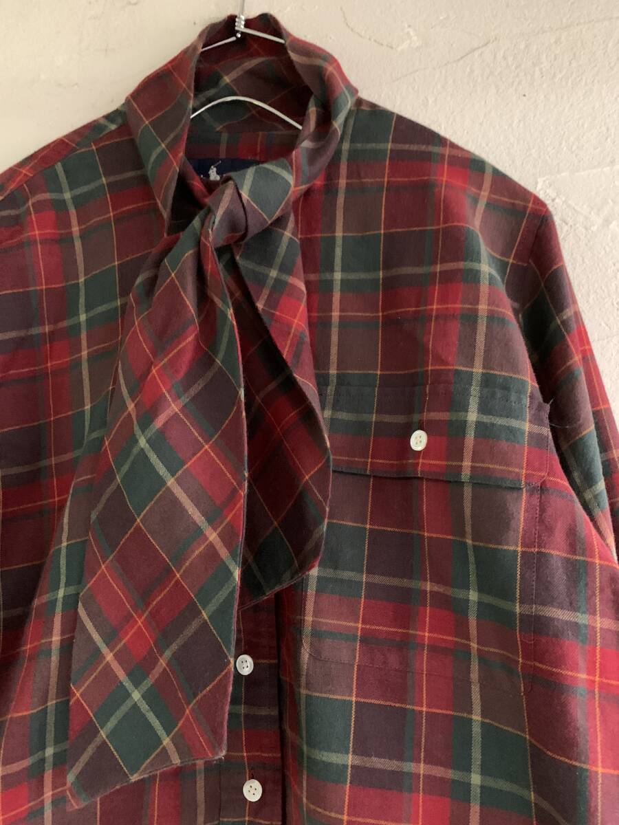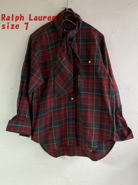 ◆S24◆Ralph Lauren ラルフローレン レッド系チェック柄シャツ リボン付きブラウス カフスボタンホール サイズ7 やや訳あり