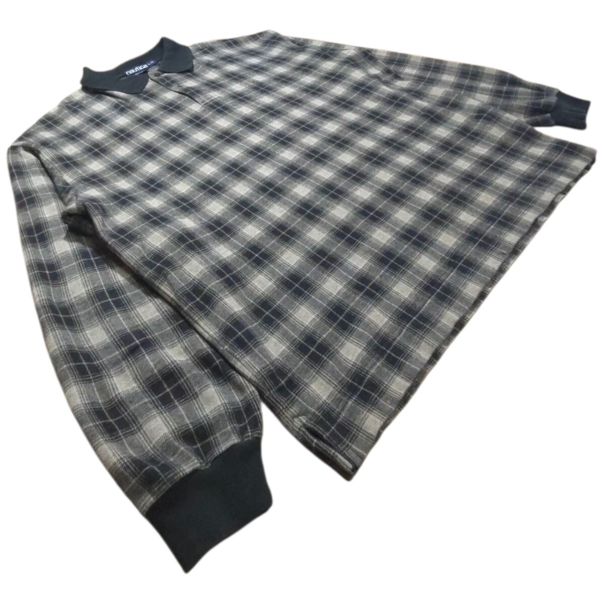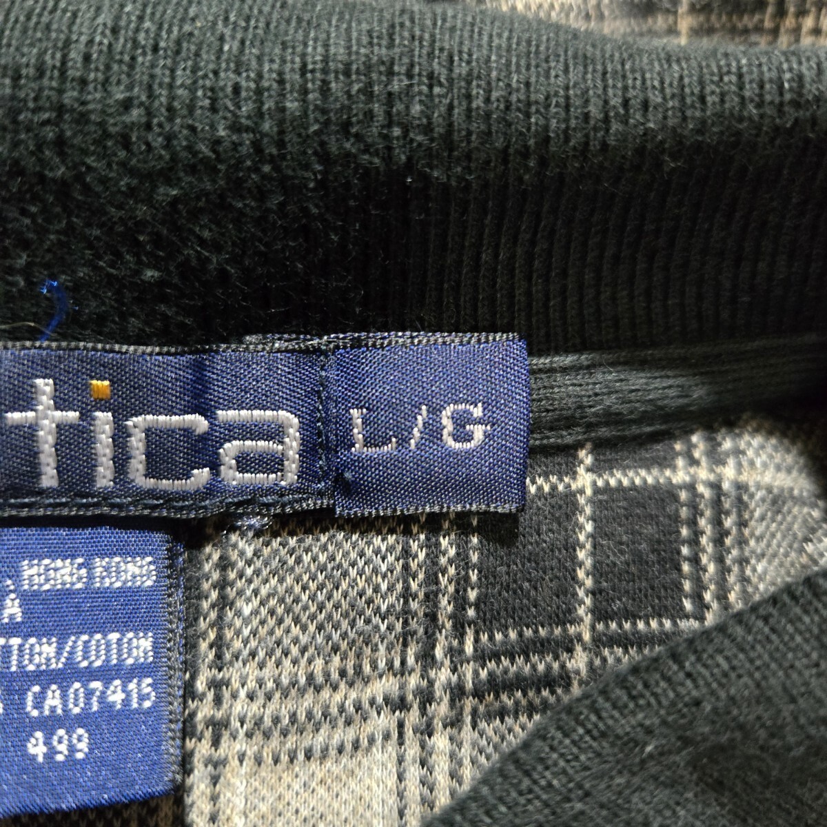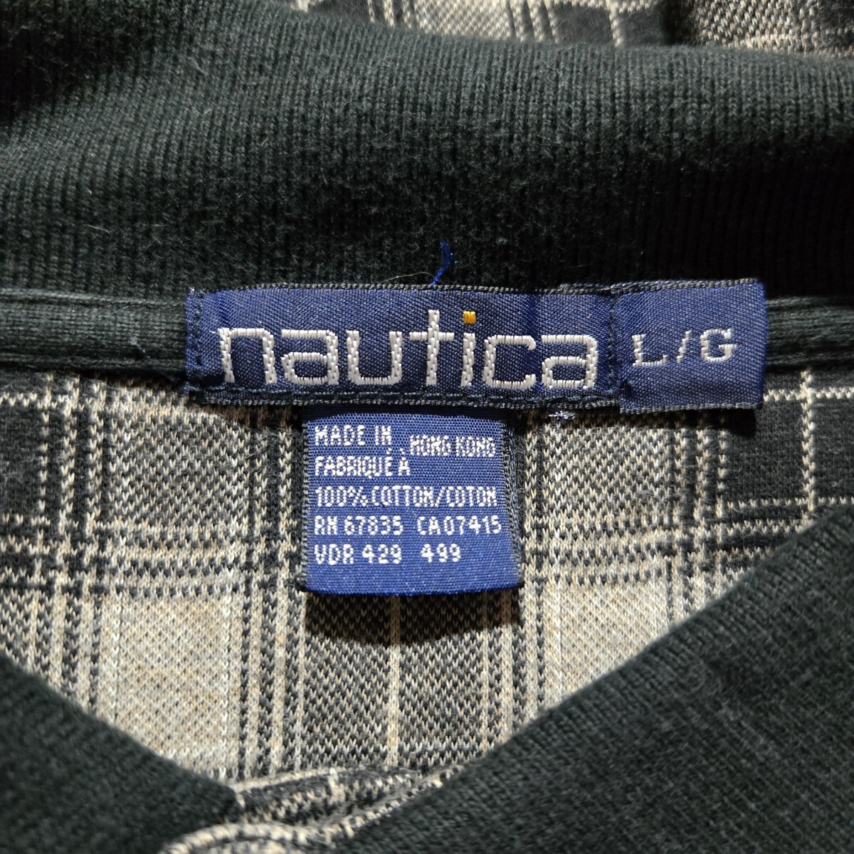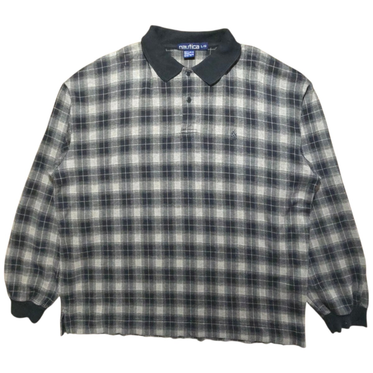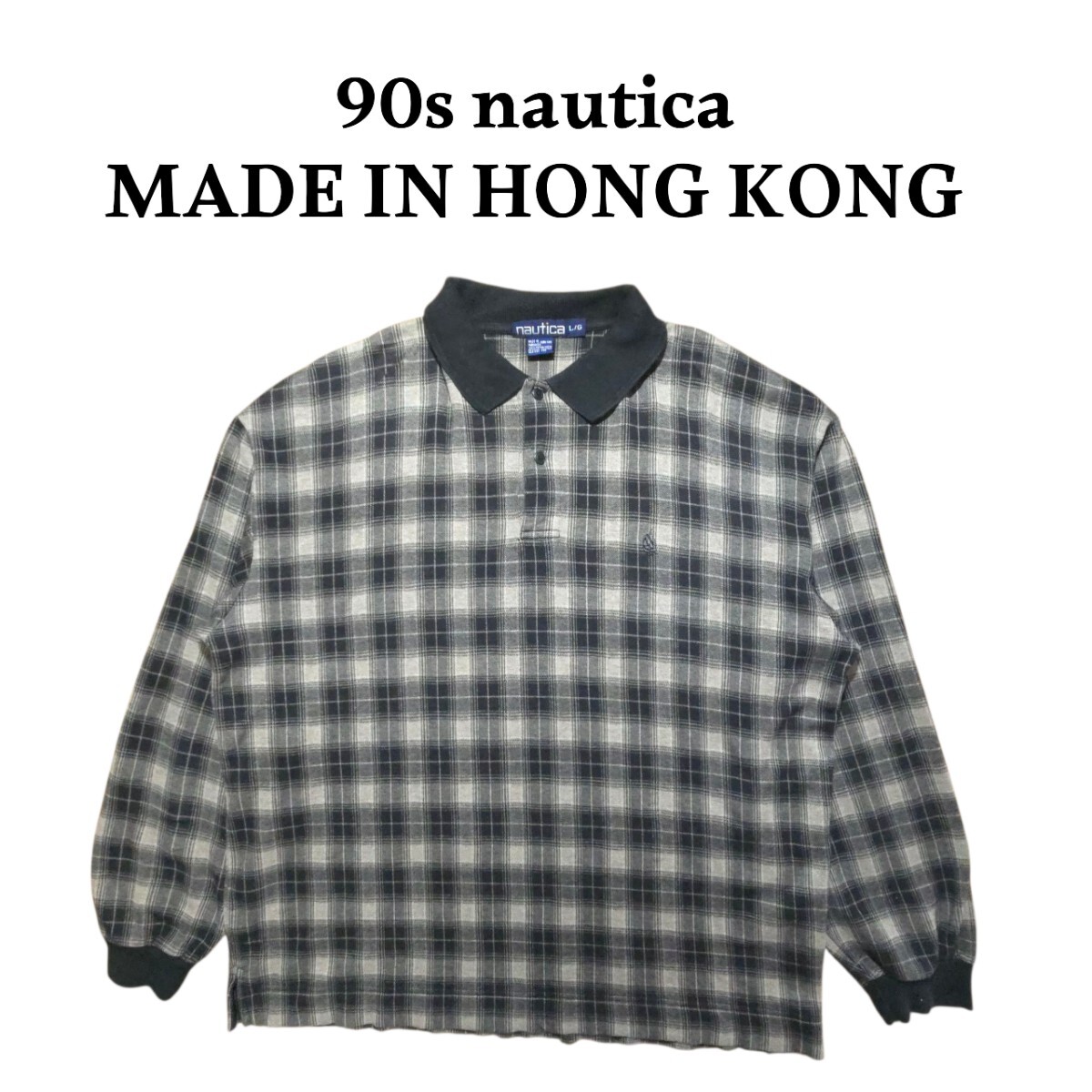 90s NAUTICA 香港製 オンブレチェック柄 長袖ポロシャツ Lサイズ ヴィンテージ ノーティカ