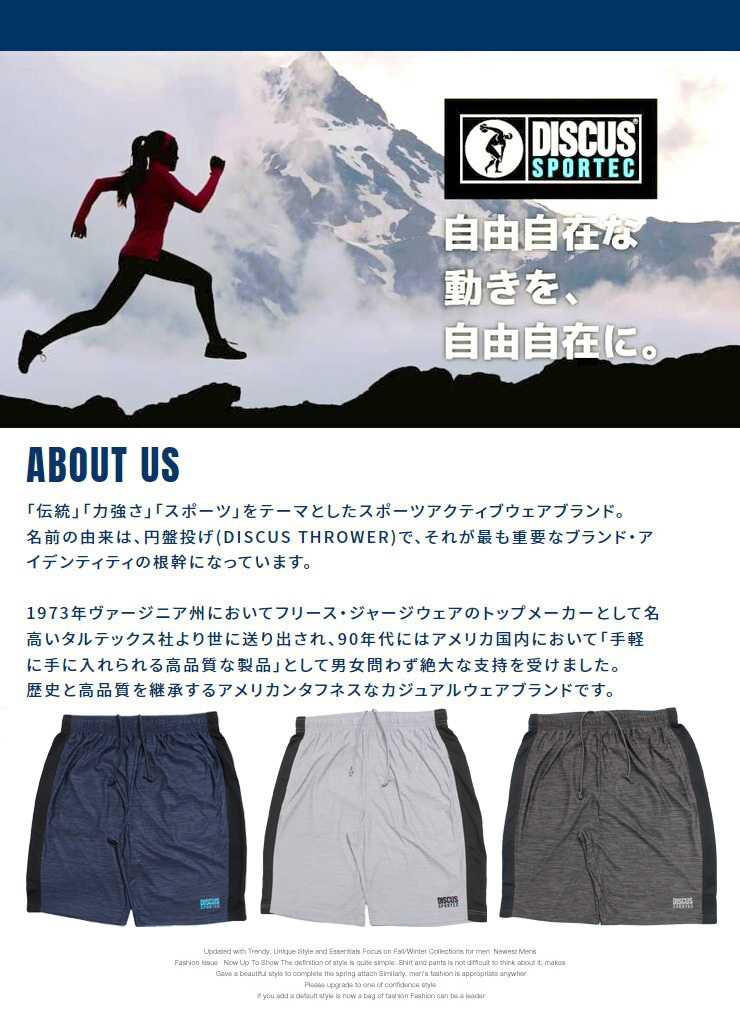 | 商品説明 | DISCUSより暑い時季におすすめの汗を吸ってもすぐに乾かすカチオンメランジ素材を使用した、吸汗速乾性のあるドライ機能付きショートパンツの登場です。 |
