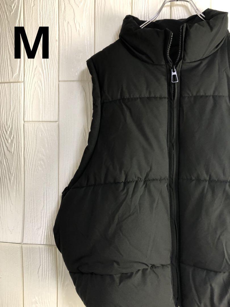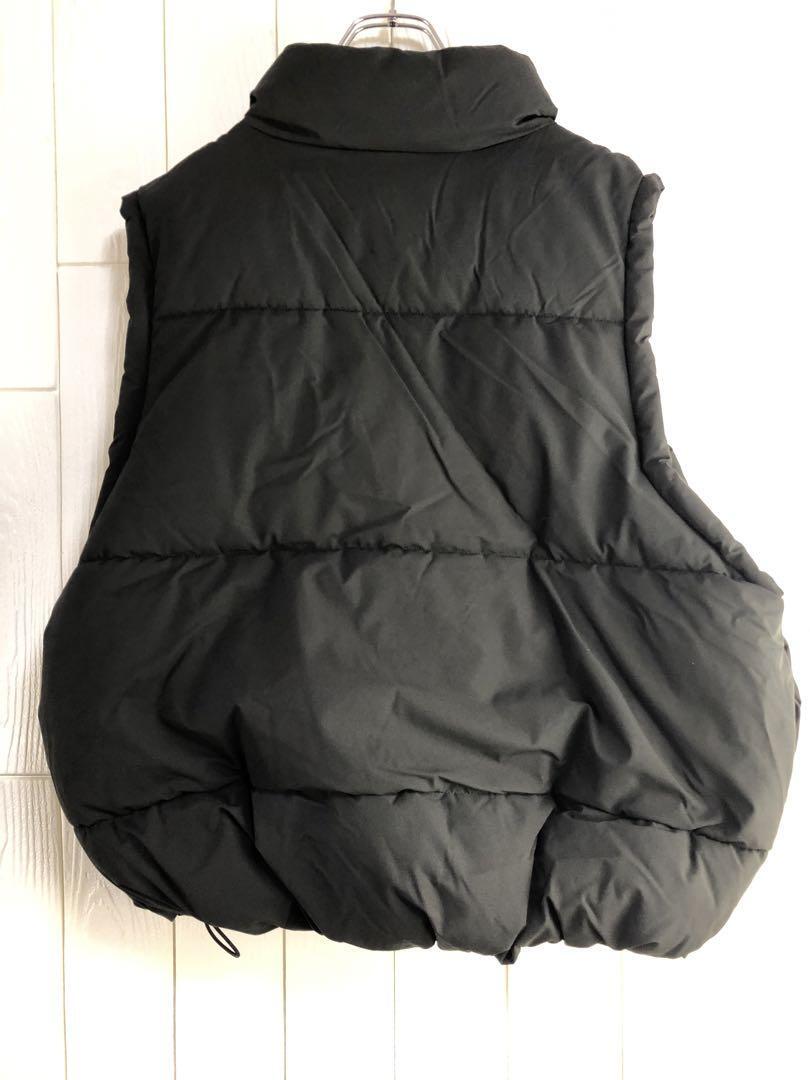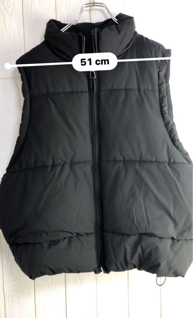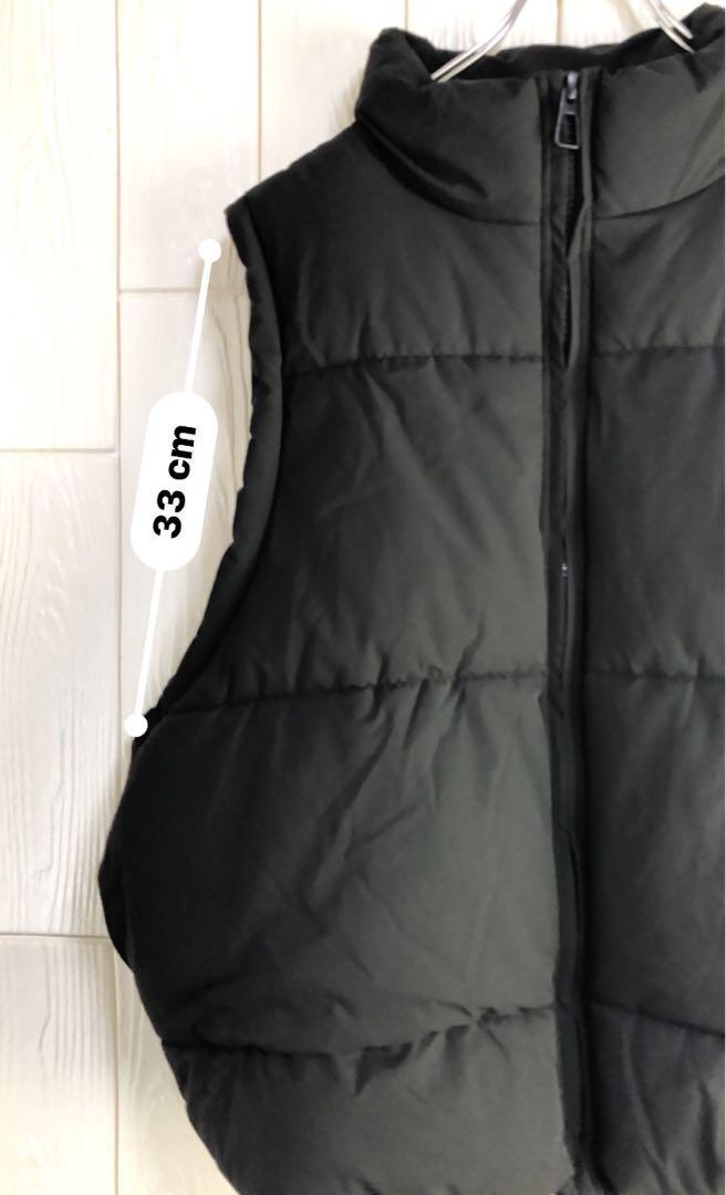 シンプルでスタイリッシュなブラックダウンベスト、軽量で保温性に優れたデザイン。