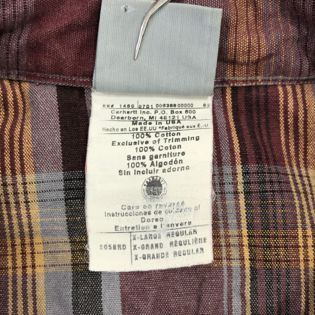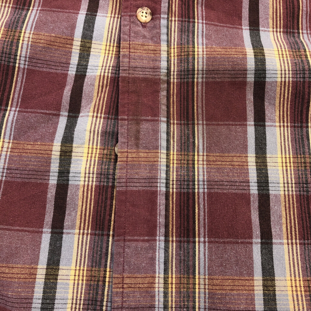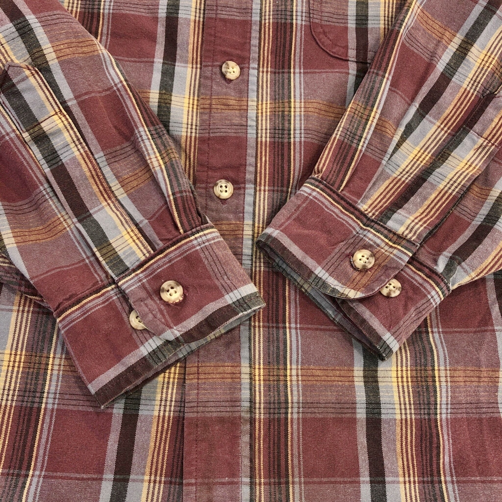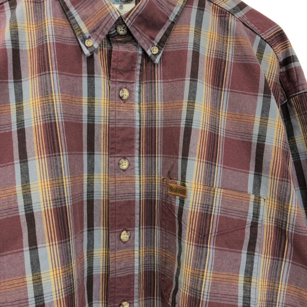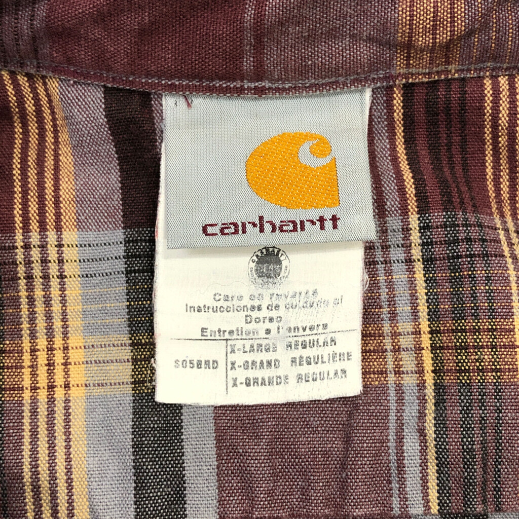 | 【商品管理番号】 V2891 【ブランド】 Carhartt/カーハート 【サイズ】 X-LARGE REGULAR 【実寸サイズ】 肩幅:約54cm 着丈:約81cm 身幅:約71cm 袖丈:約60cm 【主な素材】 表地 : コットン 【色】 ワインレッド 【仕様】 生産国 : USA製 00年代 ボタンダウン チェック 【状態】 汚れ:首元、腹部、裾 キズ:肩 | |||