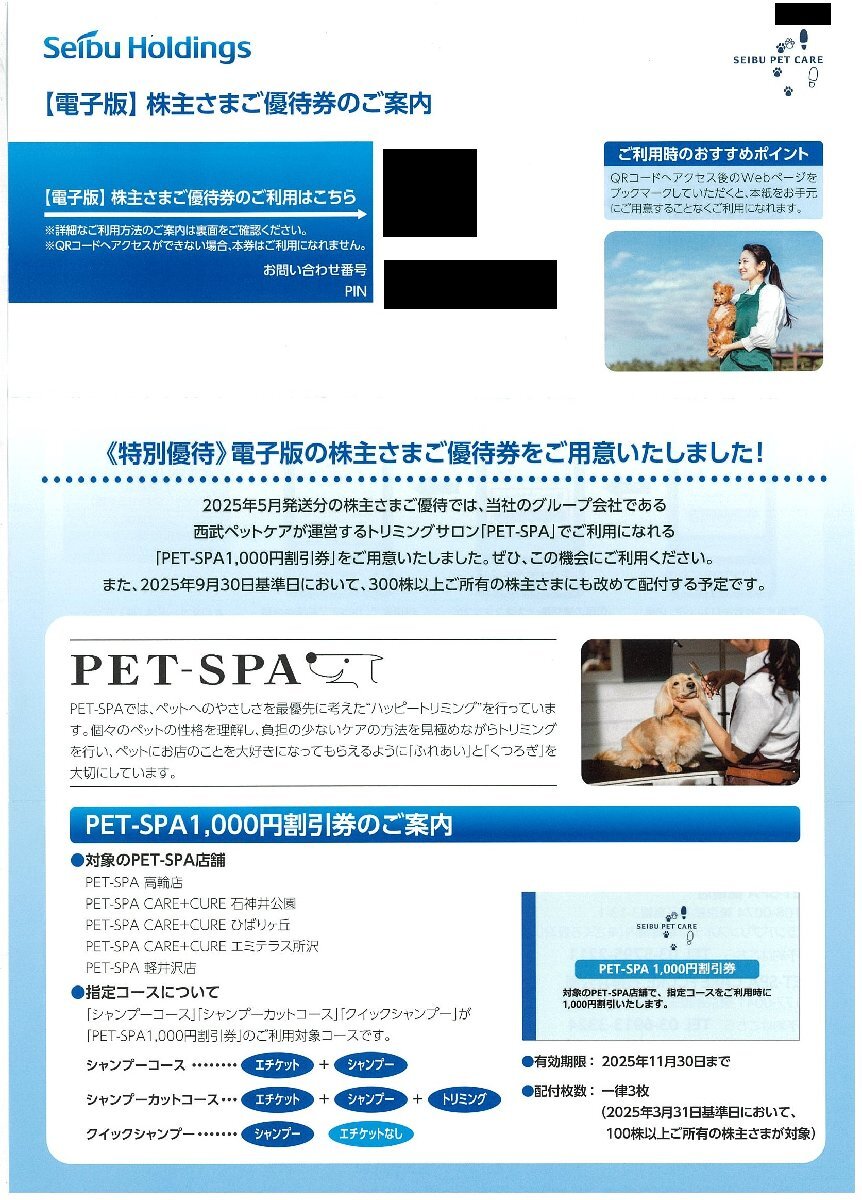 甲南☆西武HD☆ペットスパ1,000円割引券☆2025.11.30【管理7536】