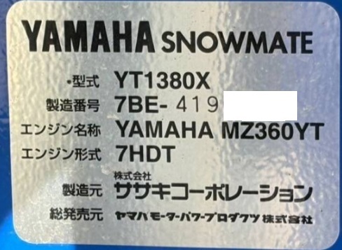 道北発 ヤマハ除雪機 YT1380X (2019モデル)