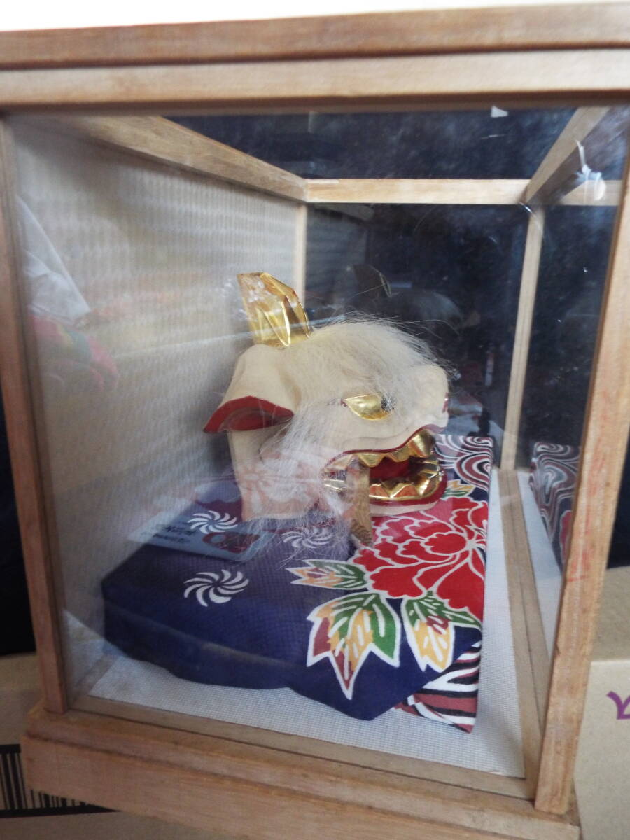 加賀百万石伝統の郷土玩具 魔除け獅子 硝子ケース付き(ケース寸33,5×24×奥行9cm)美品