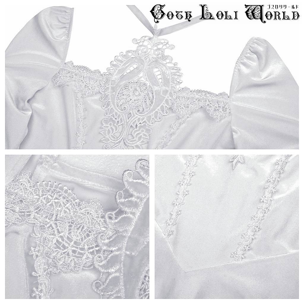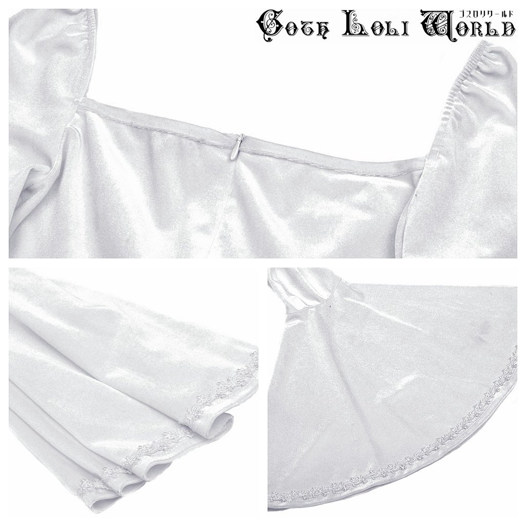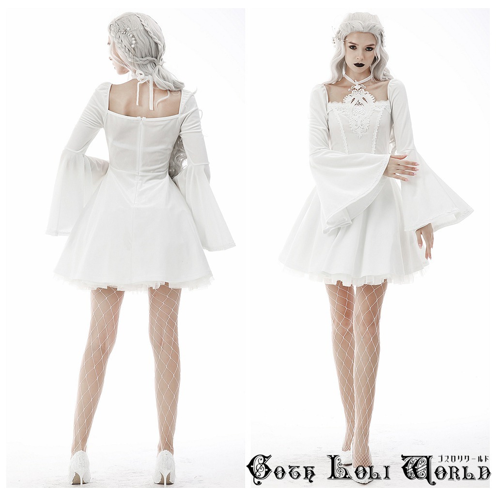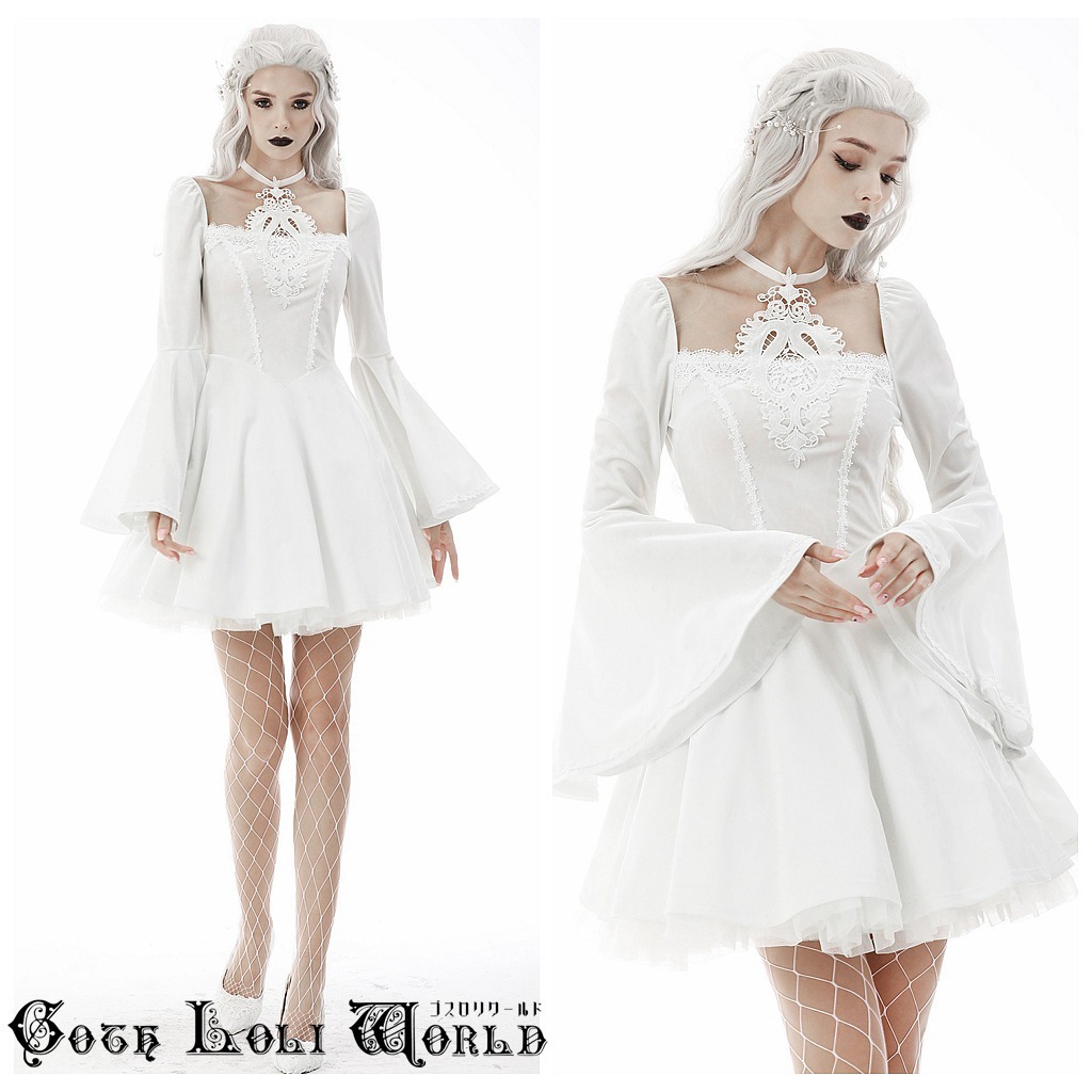 DW594-WH-M スロリスクエアネックベルスリーブベロアワンピース 白色 ゴスロリワールド ゴシック パンク ロック ロリィタ ビジュアル系 V系