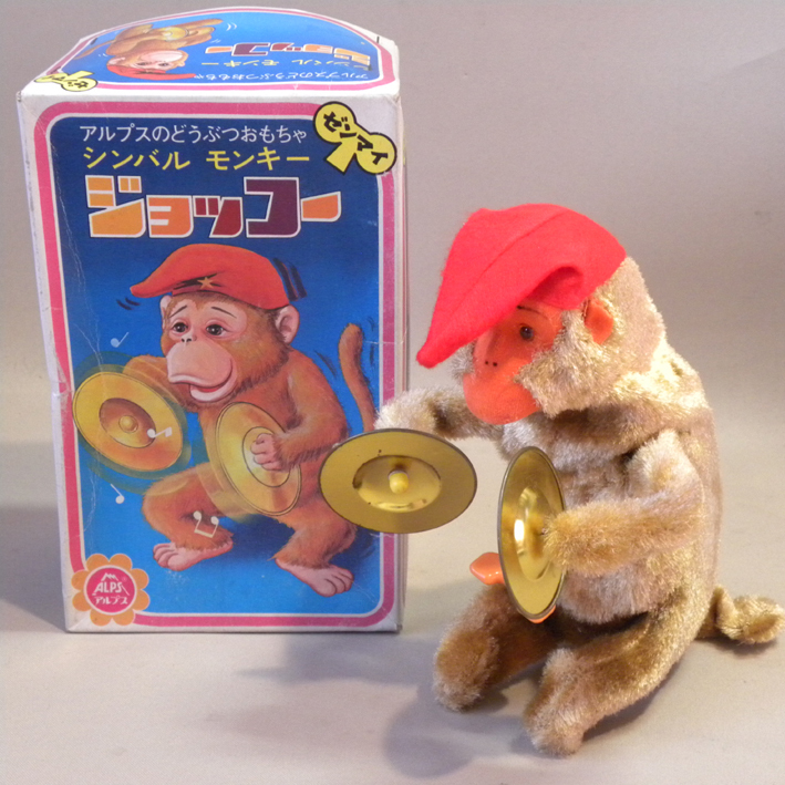 1970年代当時物、アルプス「シンバルモンキー ジョッコー」未使用新品です。高さ約17cmです。