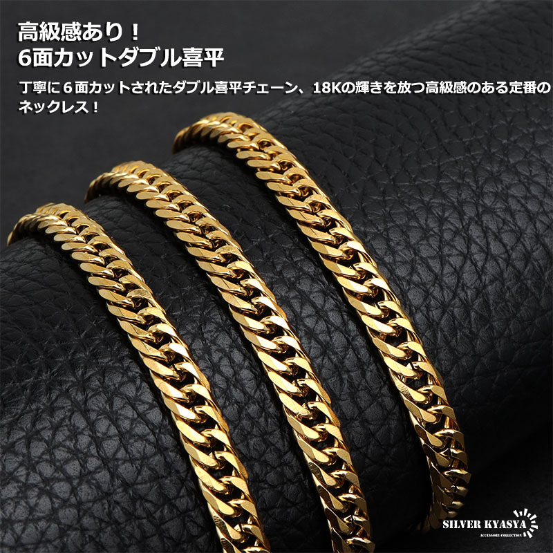 | 商品概要 | ■定番人気の6面カットダブル喜平チェーンネックレス! ■普段使いにはピッタリのネックレス! ■耐久性抜群のステンレス素材で錆や金属アレルギーの心配もなし! ・つけっぱなしOK。 ・金属アレルギーOK。 ・プール、海水浴、お風呂OK。 ・手入れ不要でOK。 ・定番ネックレスなので、プレゼントにもおすすめ ■表面には18Kメッキ加工、高級感のあるネックレス! ■人気の中折式ロックで見た目もカッコ良く、胸元に存在感を演出してくれるオススメできるネックレス! |