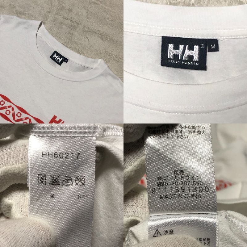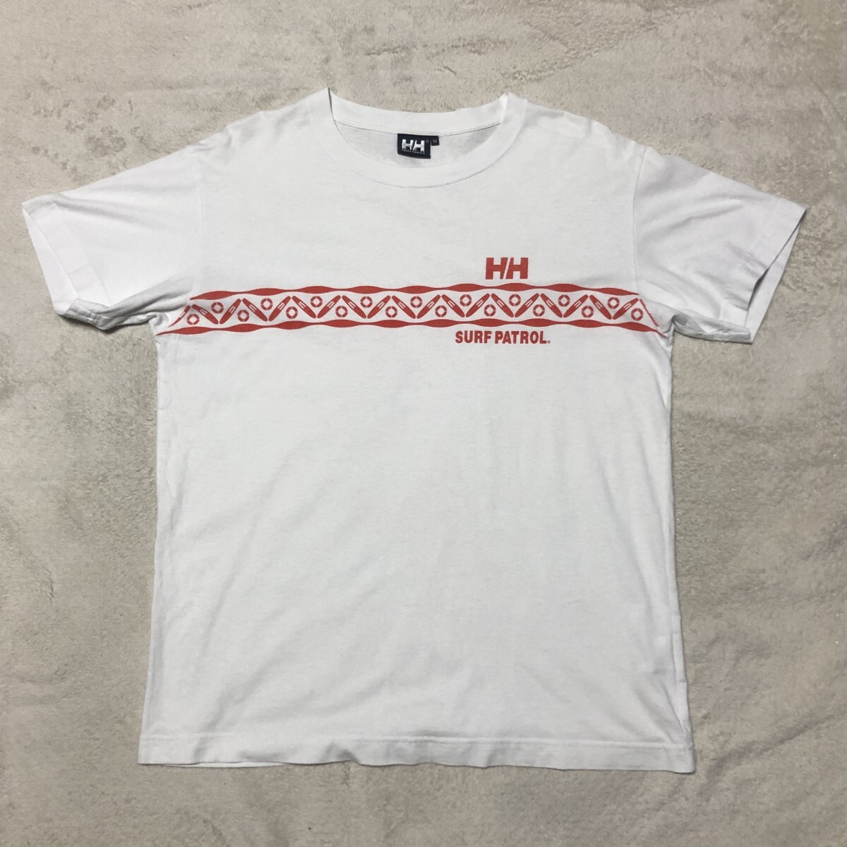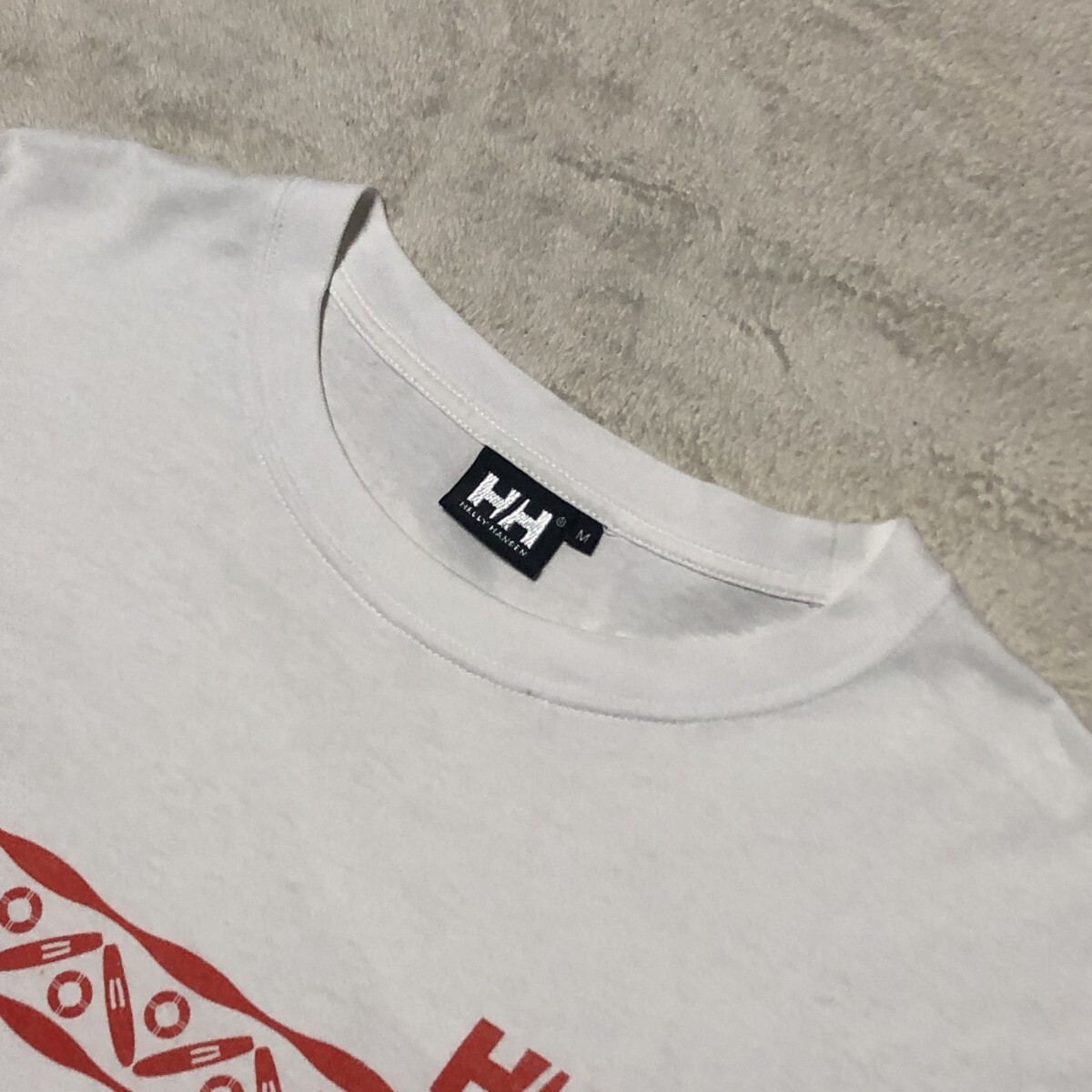 ヘリーハンセン HELLYHANSEN 半袖Tシャツ クールネック 両面プリント 白 Mサイズ