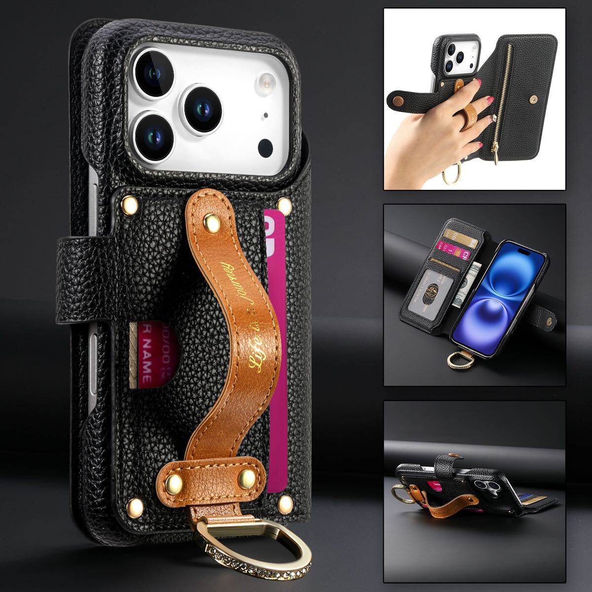 ブラック iPhone17 pro Max用ケース 手帳型 RFID磁気防止 スキミング防止 カードポケット 落ち着いた色 横置き機能 高級PU 気質 全面保護