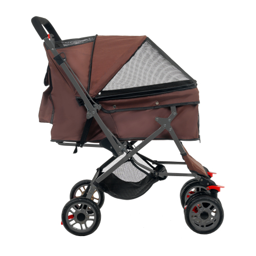 ペットカート 対面式 折りたたみ 多頭 中型犬 小型犬 猫 2way 軽量 組立簡単 工具不要 介護用 ドッグカート ペット用品 【ブラウン】
