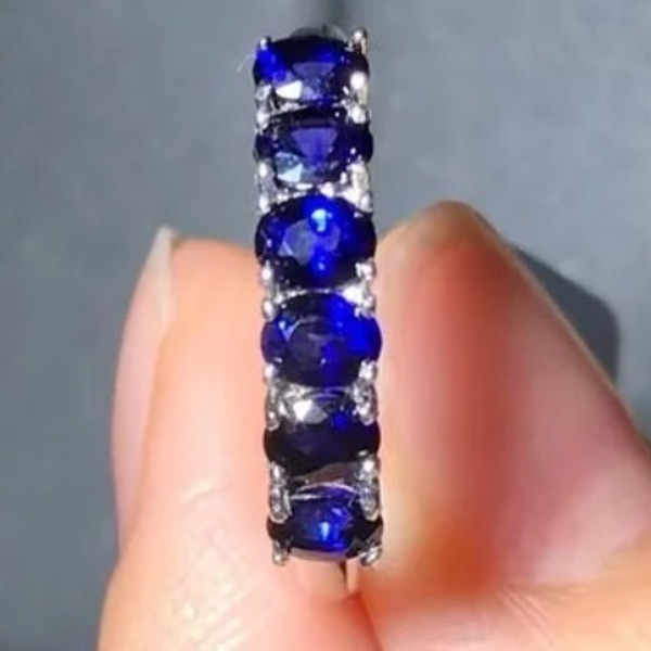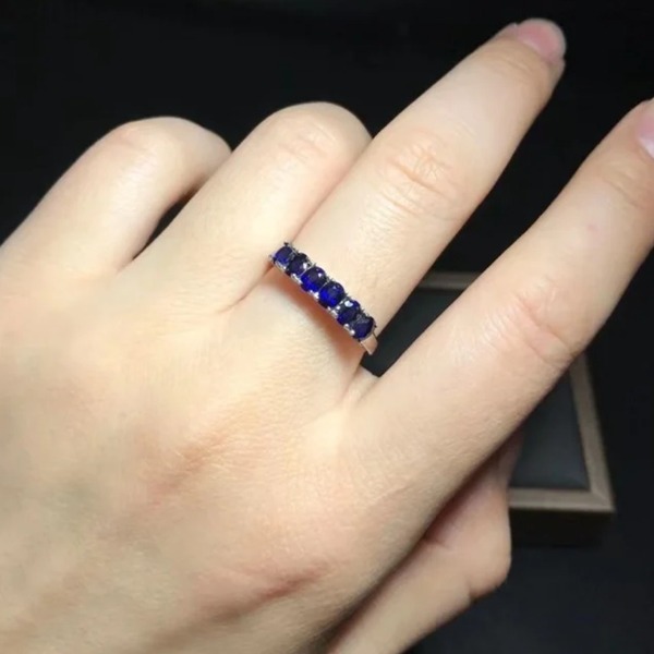 女性のための天然サファイア925シルバーリング シンプルな誕生日プレゼント ウェディングギフト